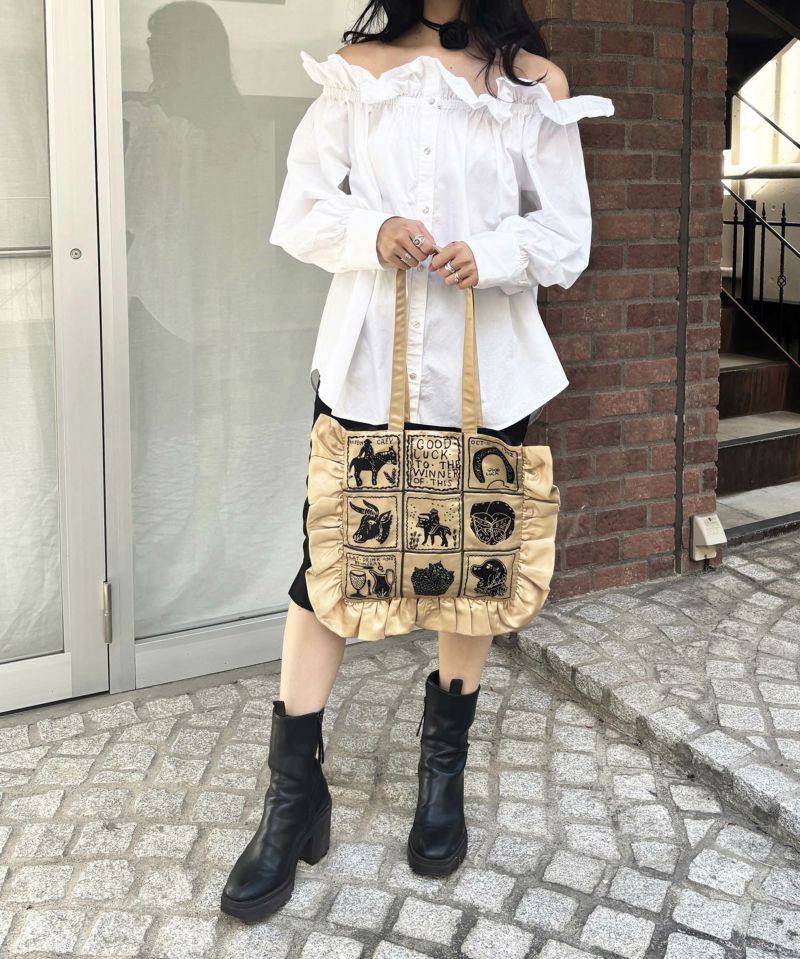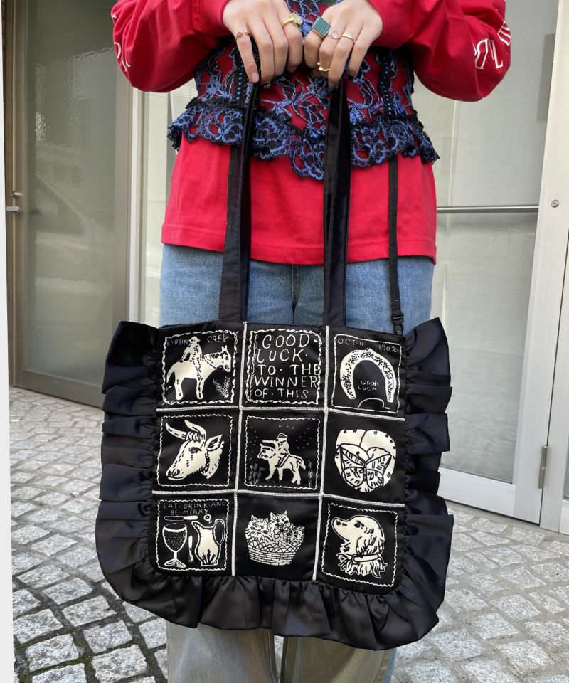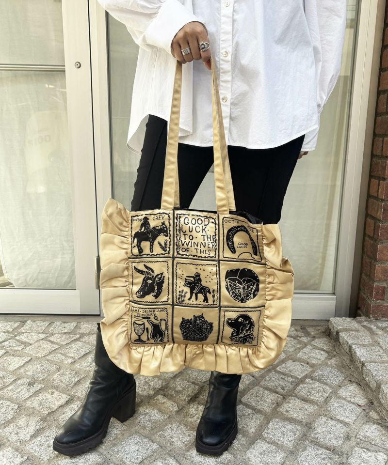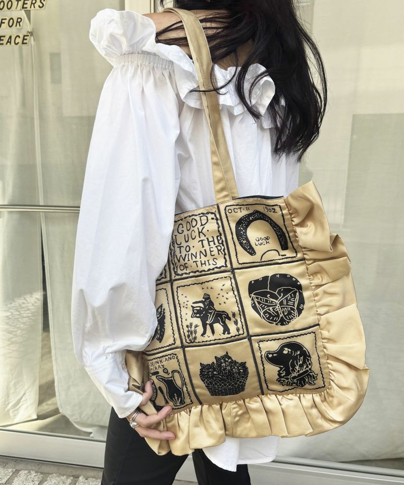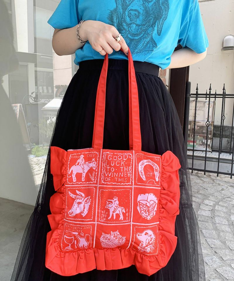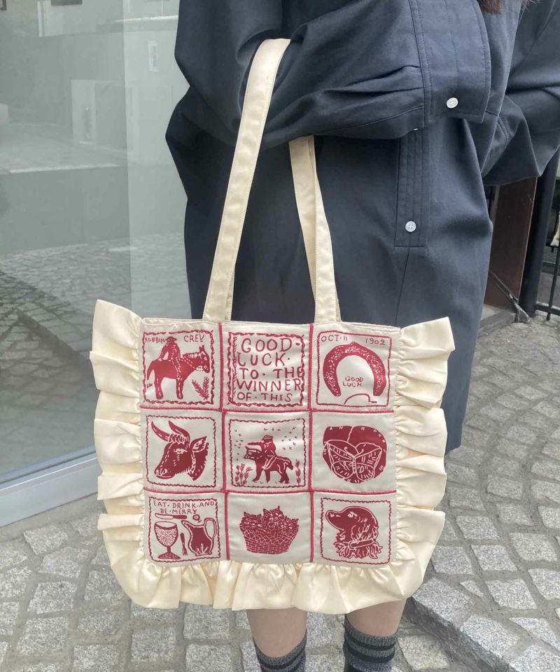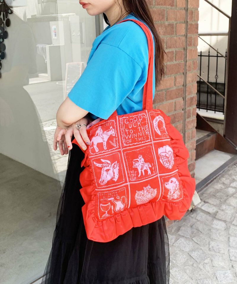 フリルがポイントのトートバッグ。