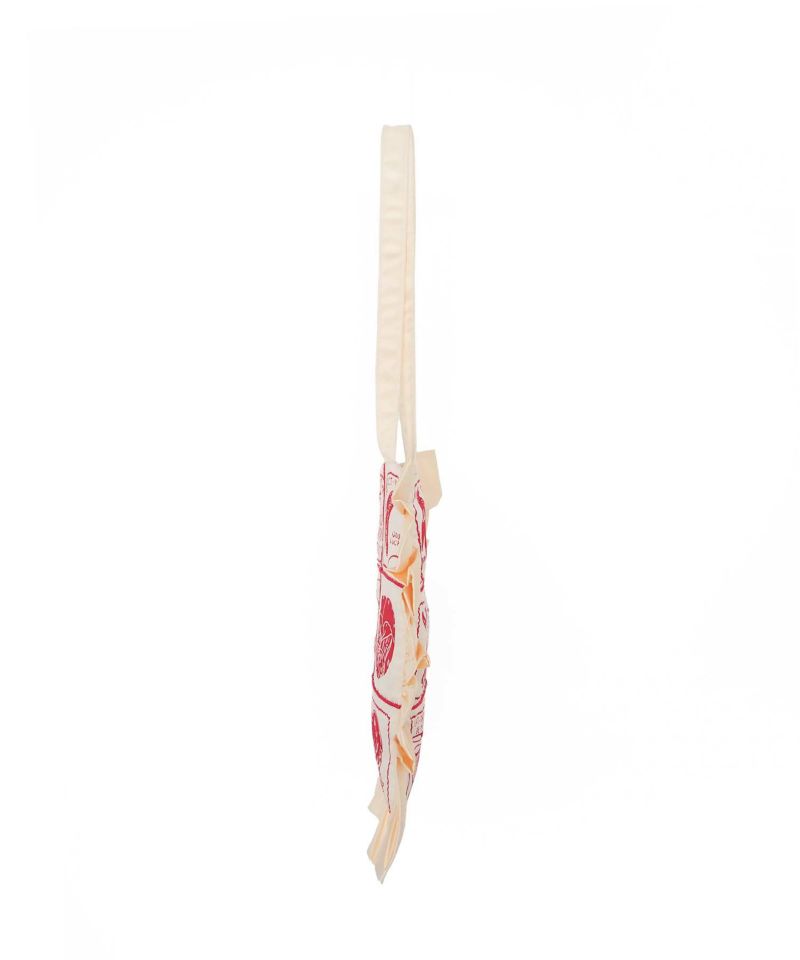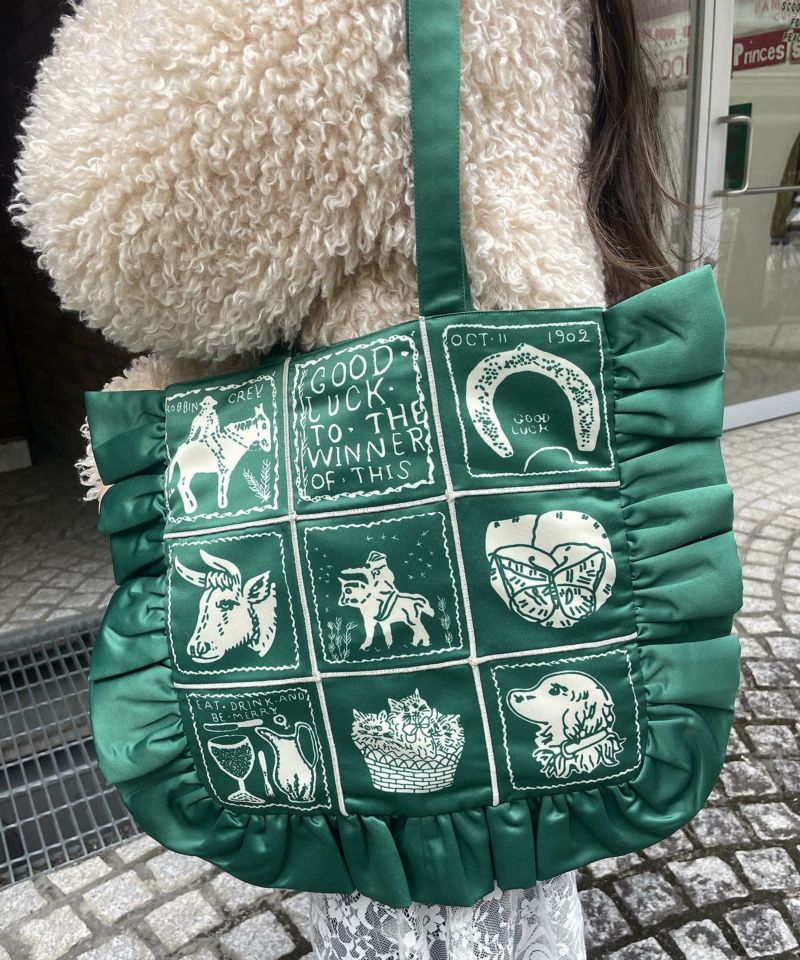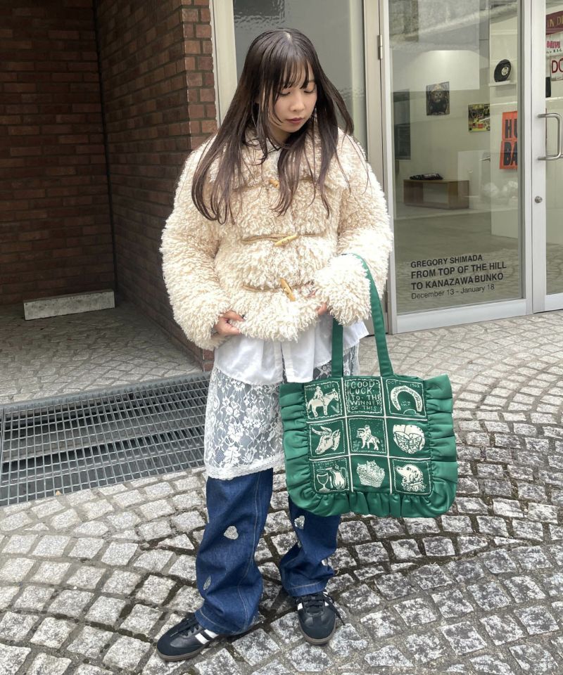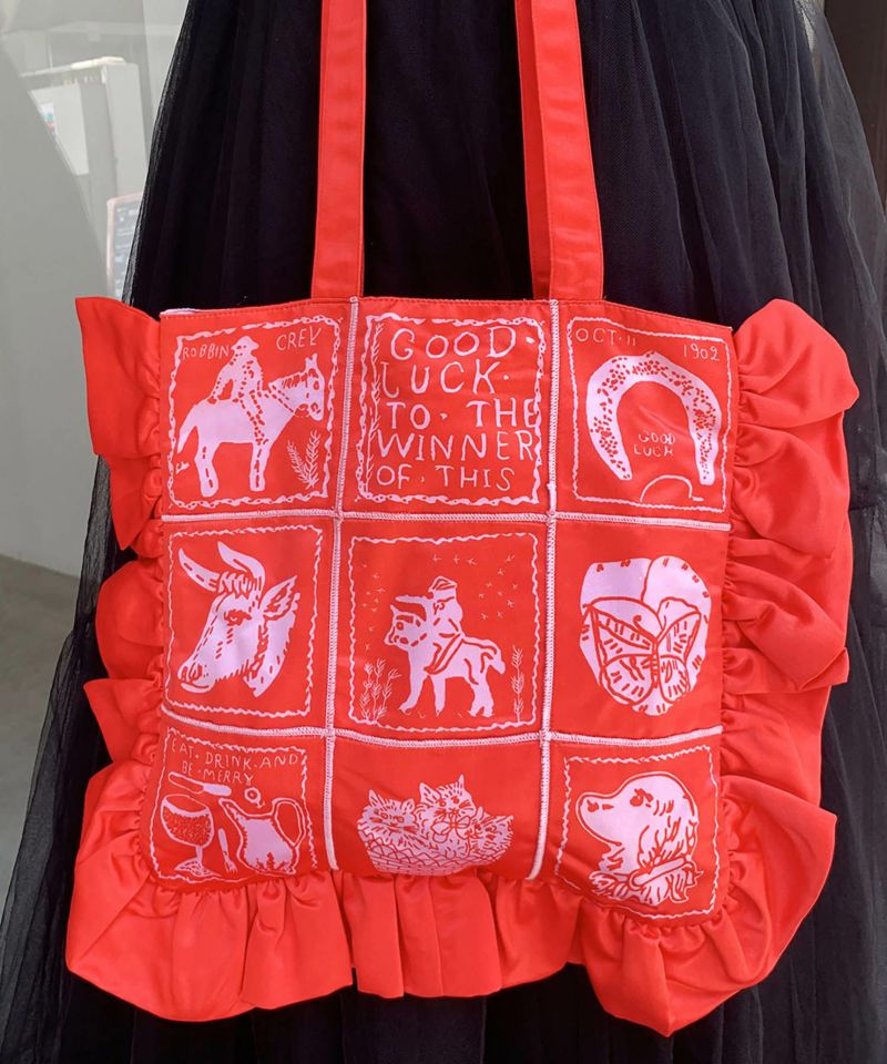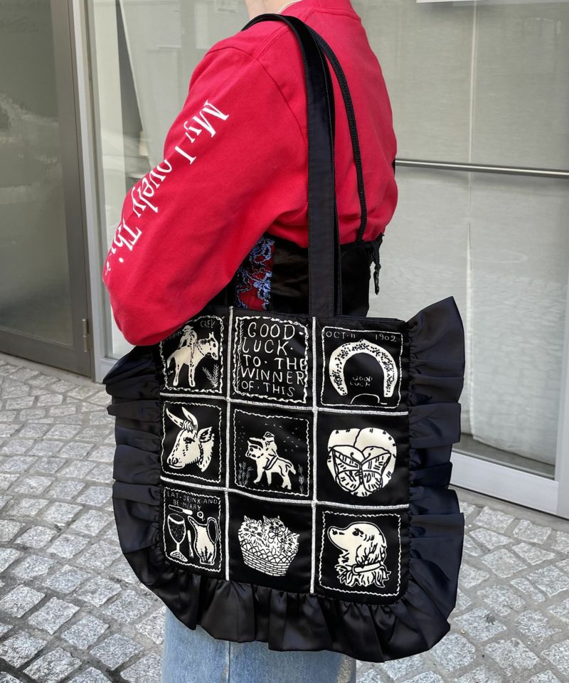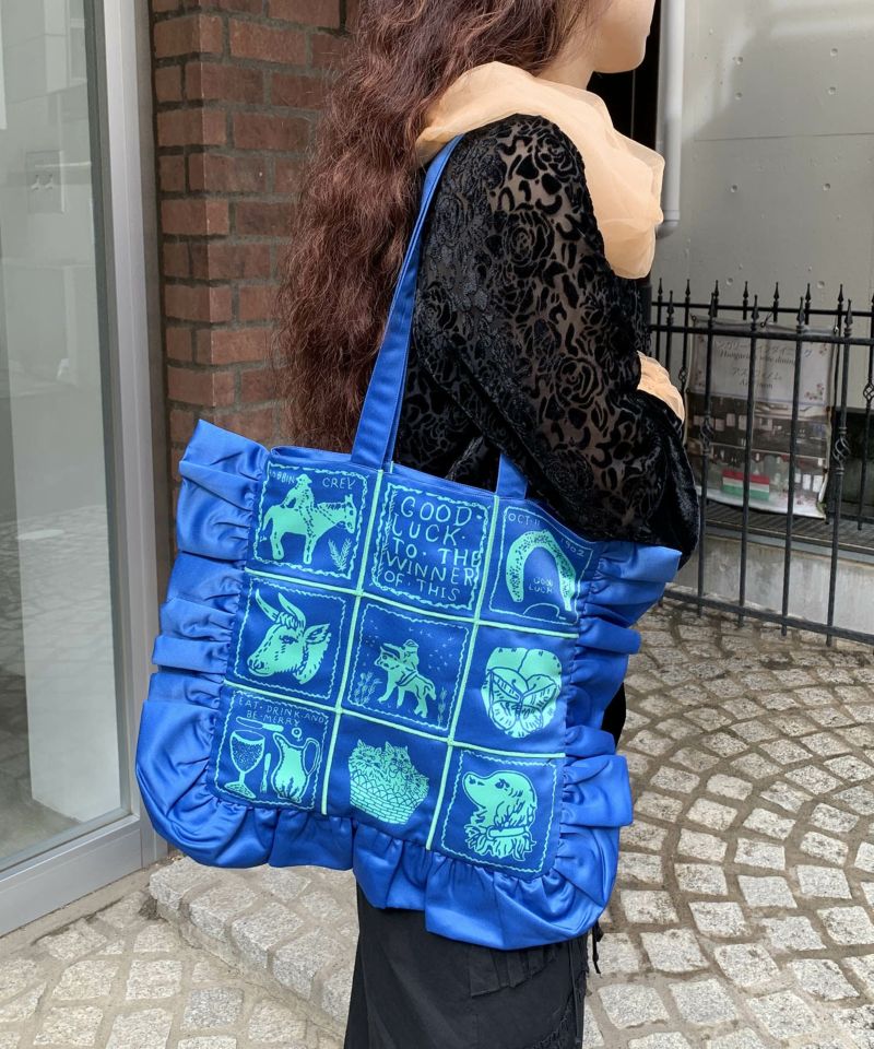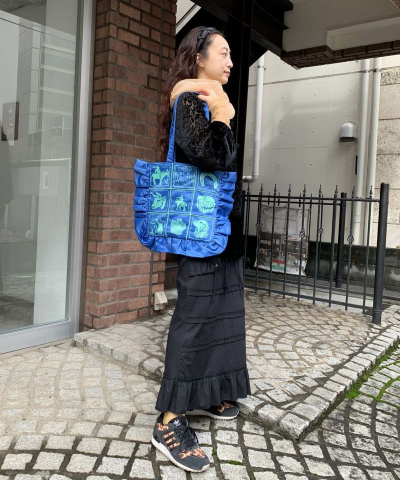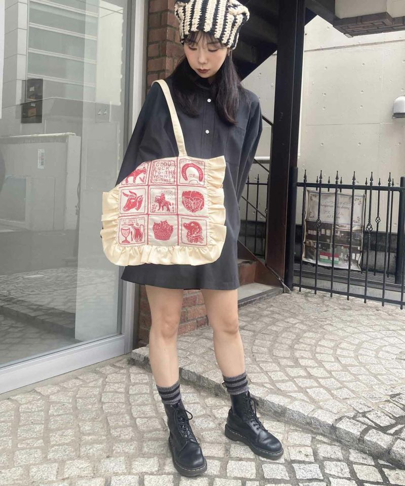 フリルがポイントのトートバッグ。