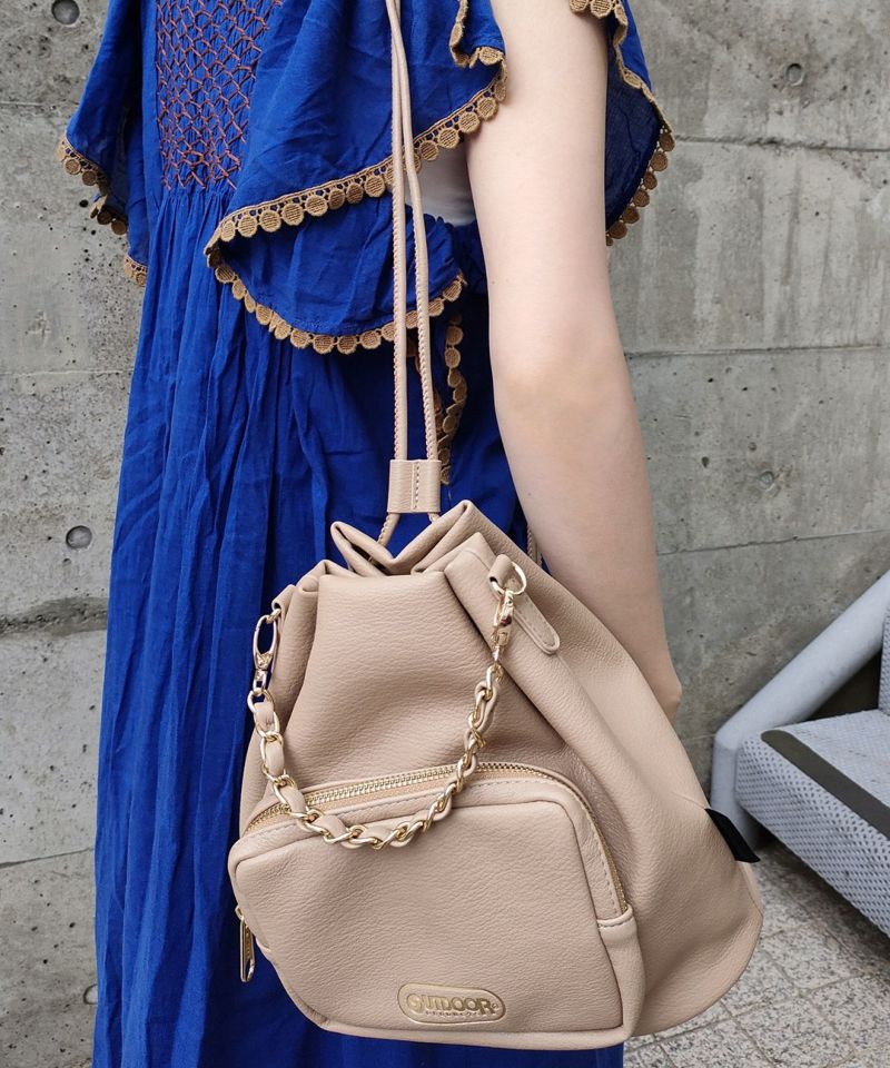 華奢で長めにとった紐は、リュックとしてはもちろん、2本をまとめて片方の肩にかけて持つとさらに抜け感のあるバランスになりおすすめです。