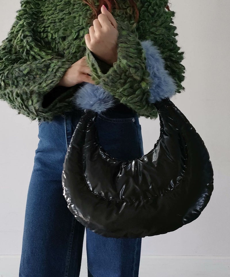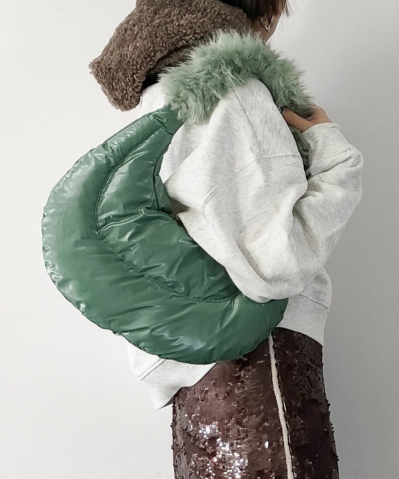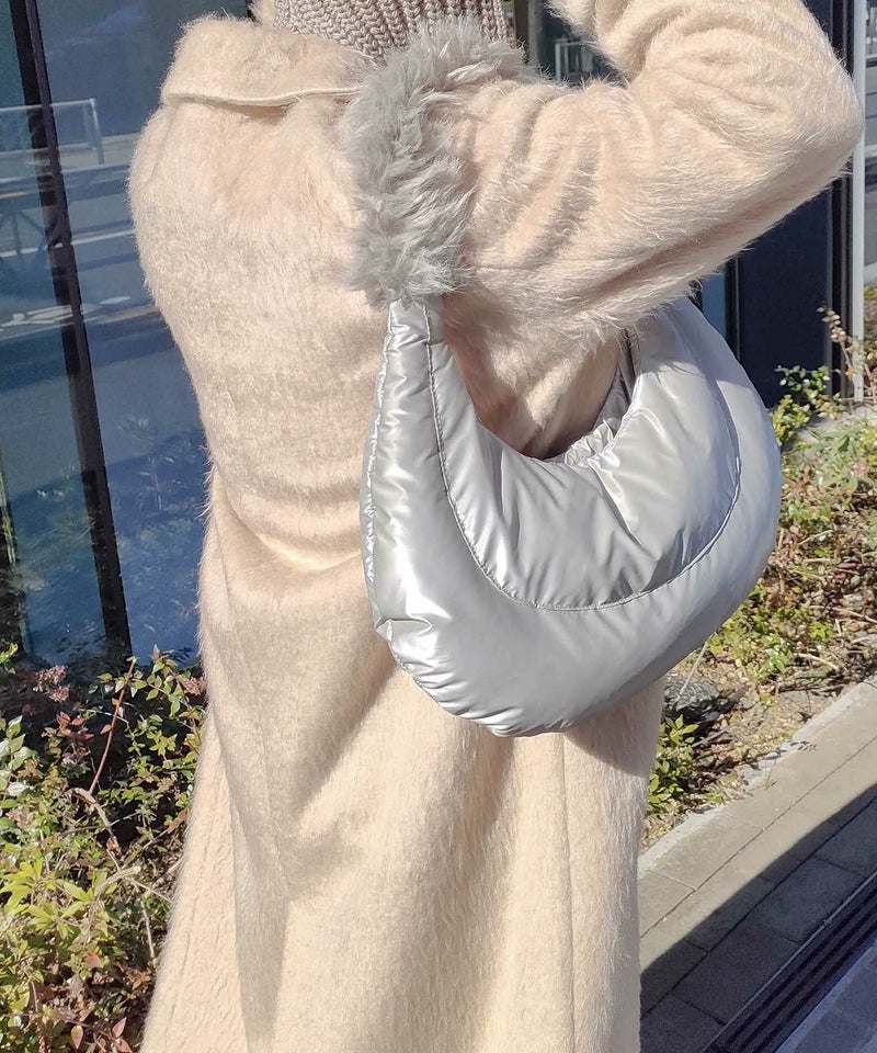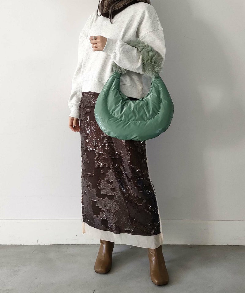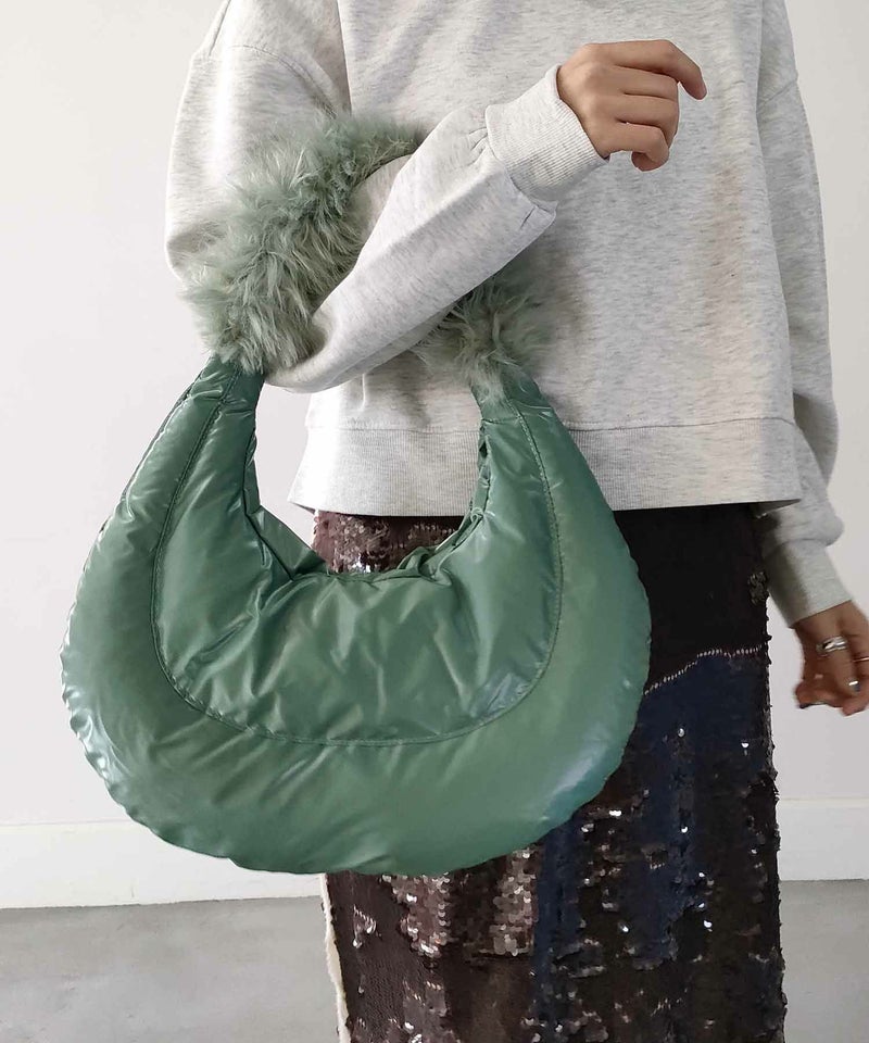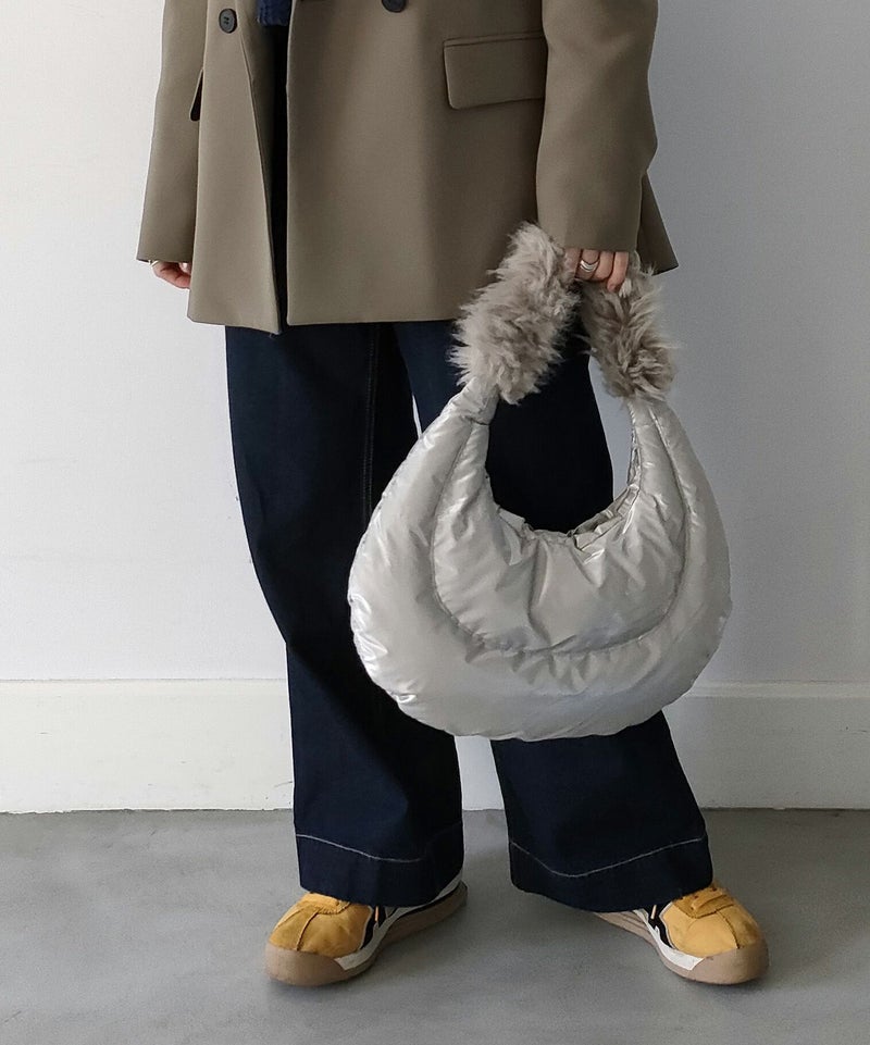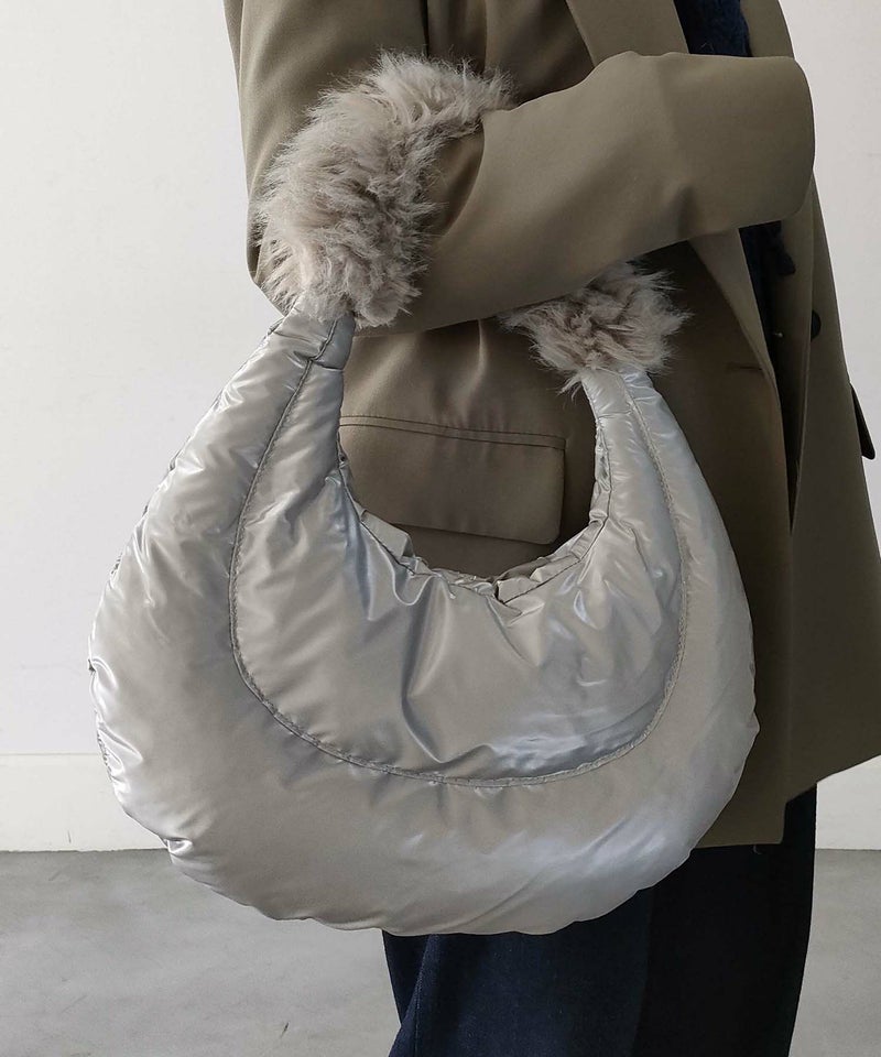 ふわっふわのファーハンドルが特徴的なハンドバッグ。