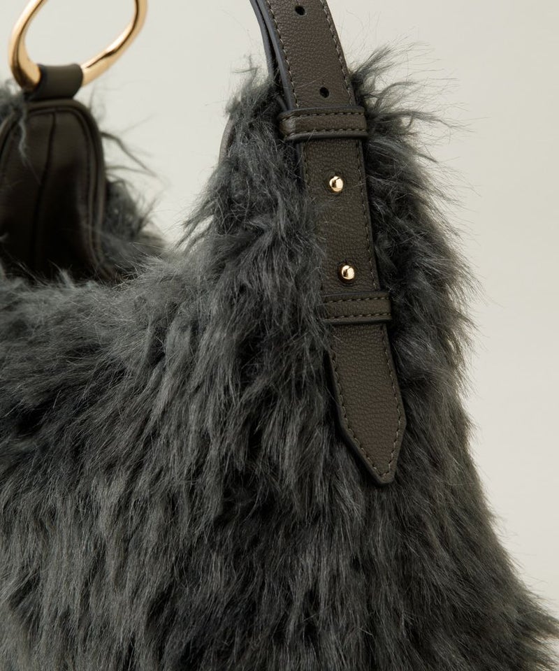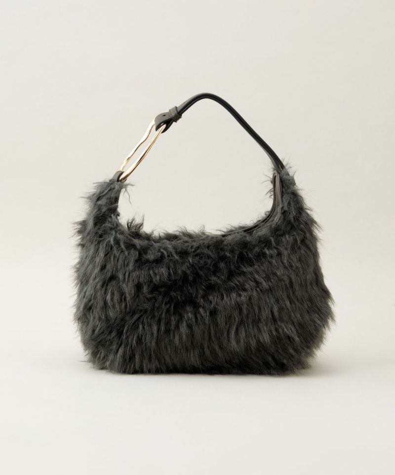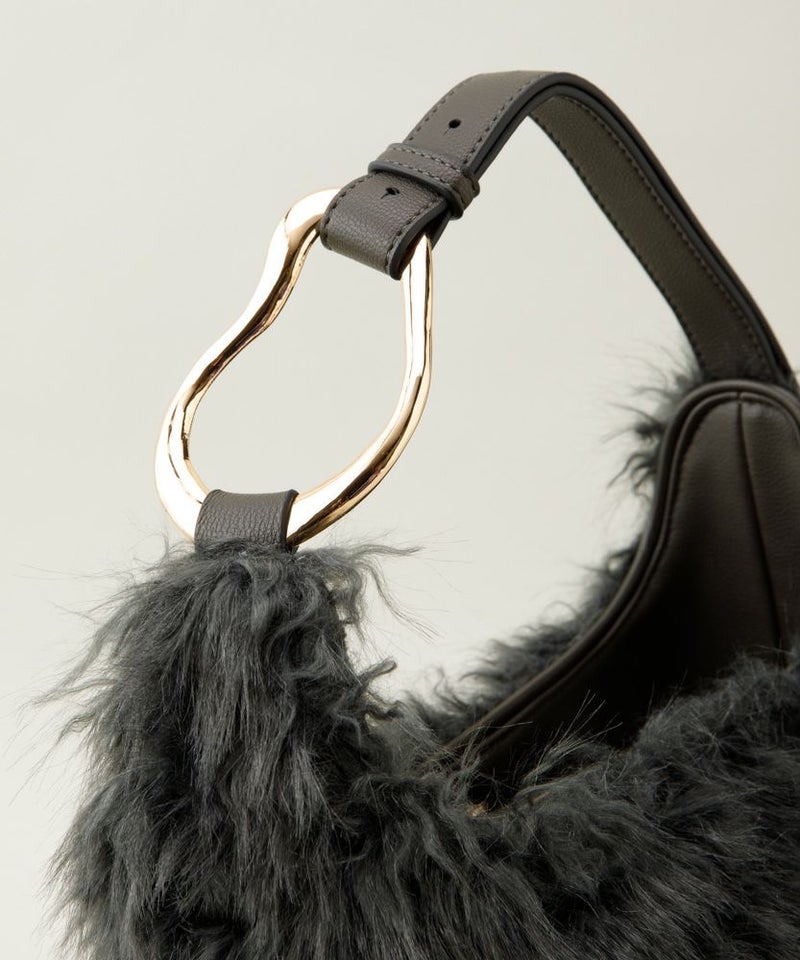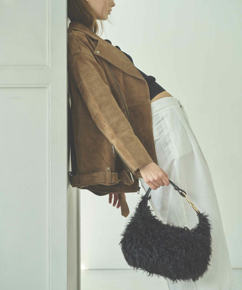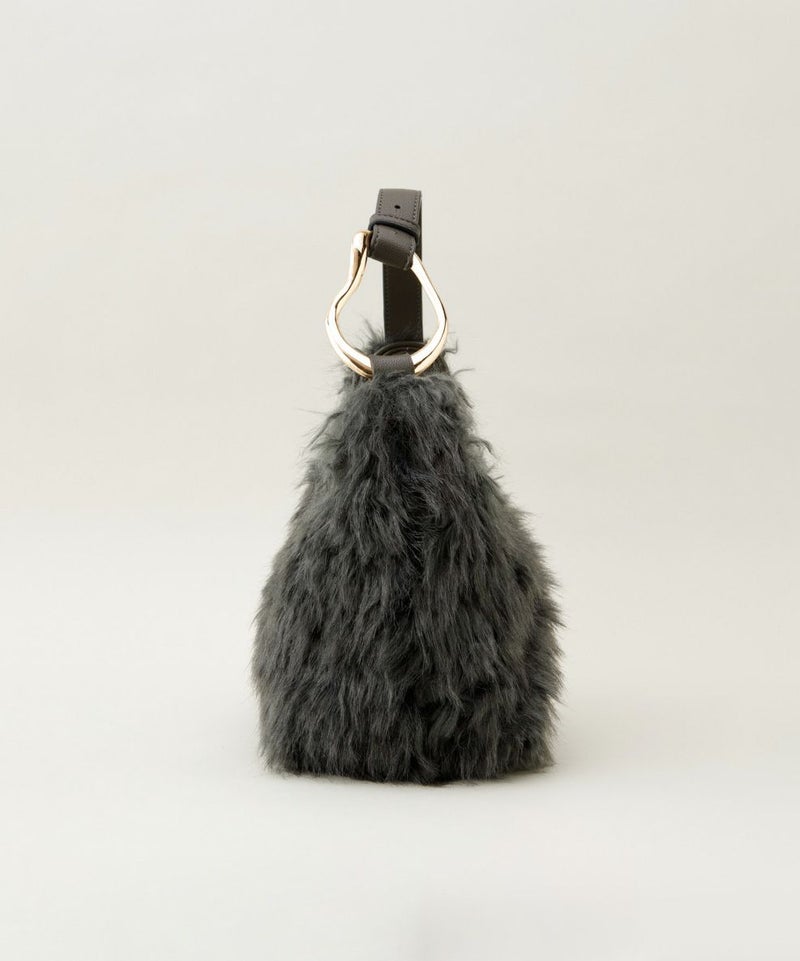 立体感のあるころんとしたフォルムが印象的なバッグ。 ラムファーのようなウェーブがかったファーが、華やかさをプラスします。 手持ちから肩掛けまで、シーンやスタイルに合わせてショルダーの長さを調整できるのも優秀。 肩掛けしやすい太めのワンハンドルショルダーや、開口部にあしらった大きめの目隠しフラップなど、使い勝手の良さもポイントです。 ・ころんとしたフォルムが印象的なバッグ ・底面のタックが立体感を演出 ・ラムファーのような華やかなフェイクファー ・アイコニックなオリジナルパーツ ・肩掛けしやすい太めのワンハンドル ・中身が見えにくい大きめのフラップ ・開閉しやすいマグネット仕様 ・ストラップ調整可能 ・内ポケット×1 ・360g <POIRE(ポワール)> 洋梨(POIRE)を模したリング金具はLEVERNISオリジナル。 ウェーブがかった毛足の華やかなフェイクファーが、秋冬のシーズンムードを高めてくれます。