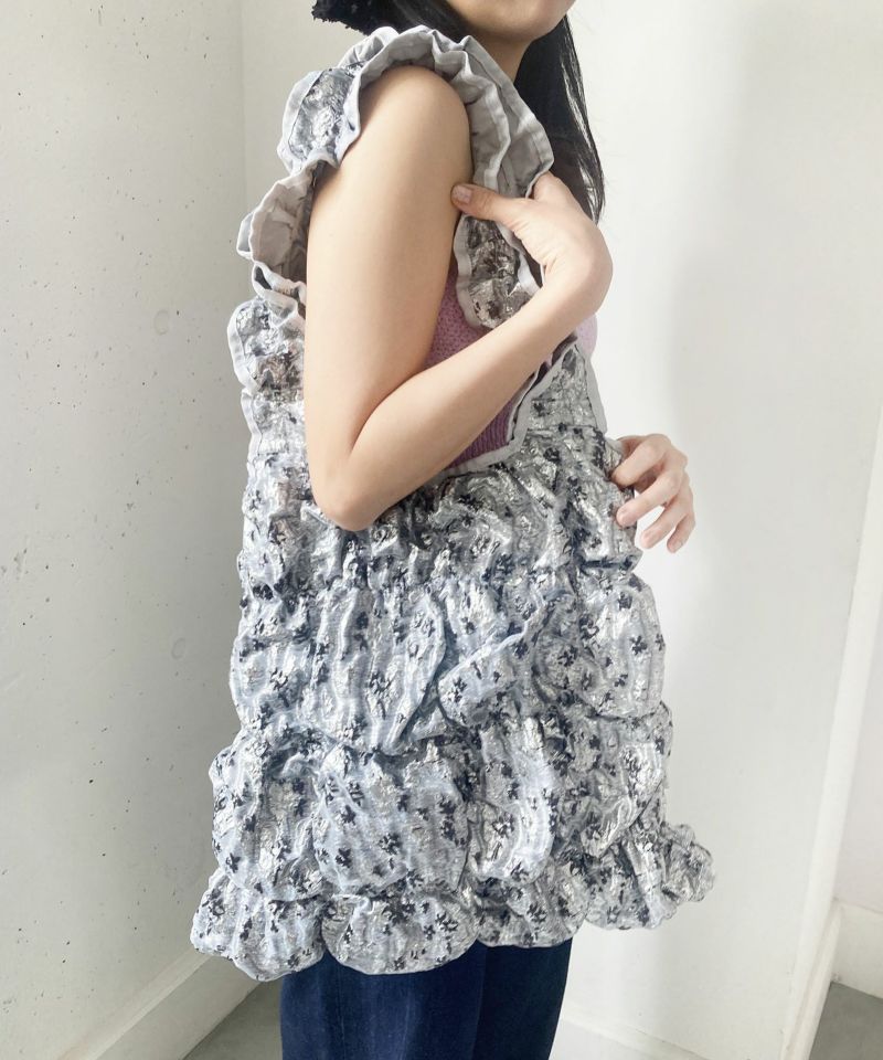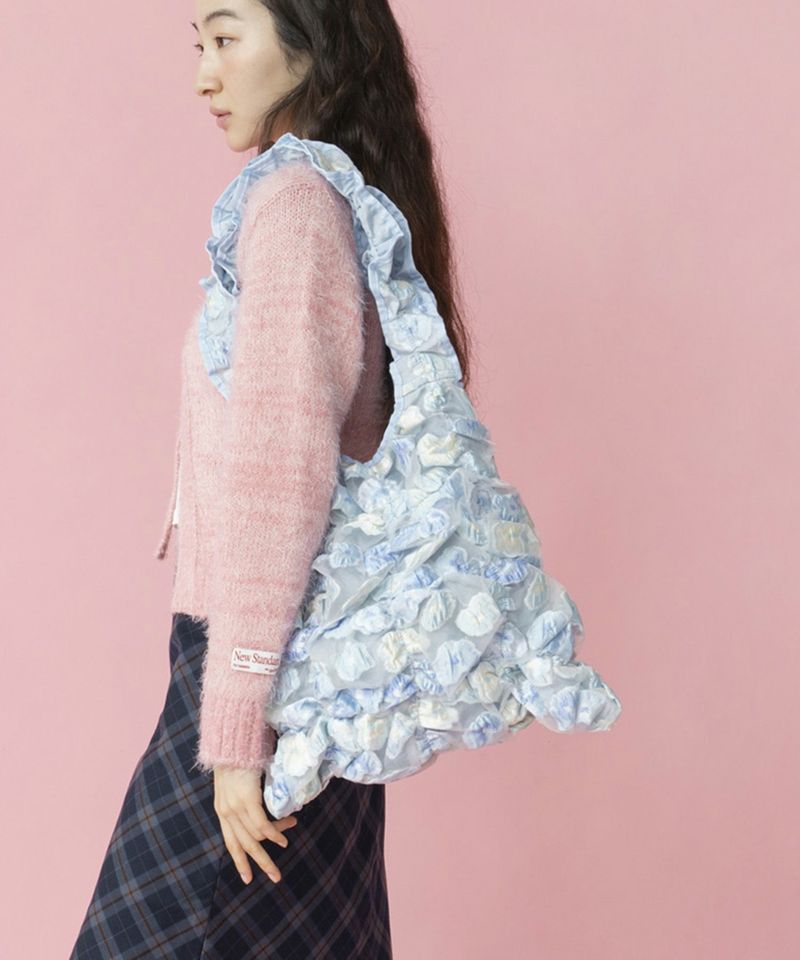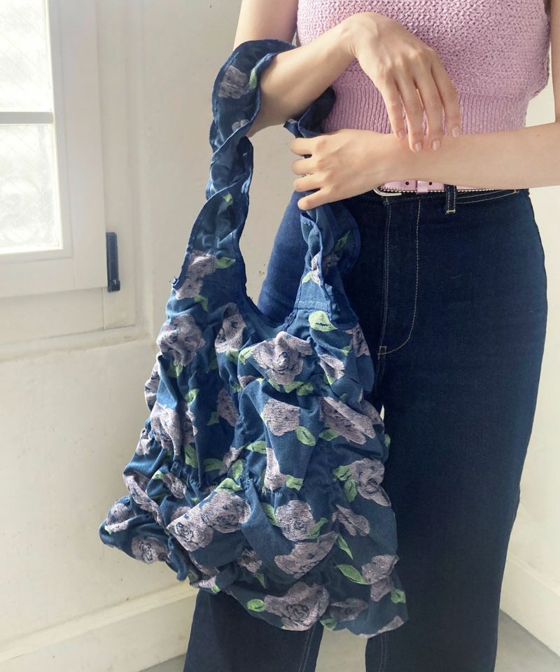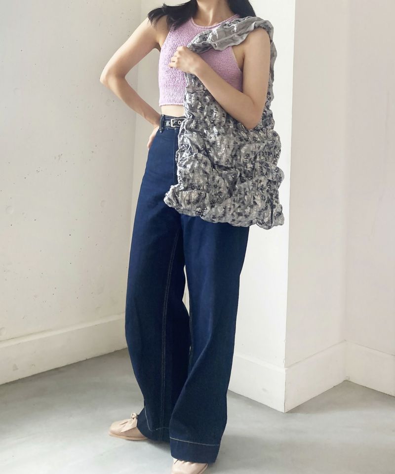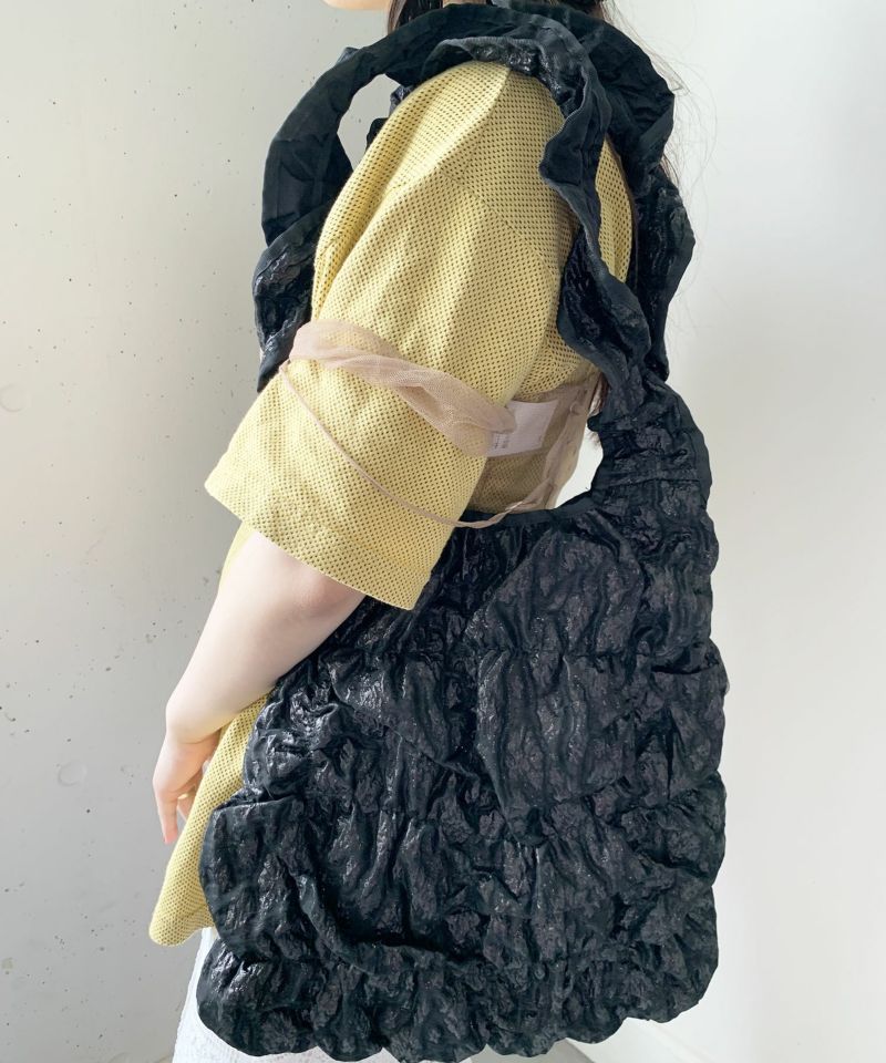ぱっと目を引くコーディネートの主役になれるデザイン! 肩掛けのできるハンドルの長さ、裏地との異素材感がポイントです。 ラフなアイテムとのコーディネートがおすすめ。