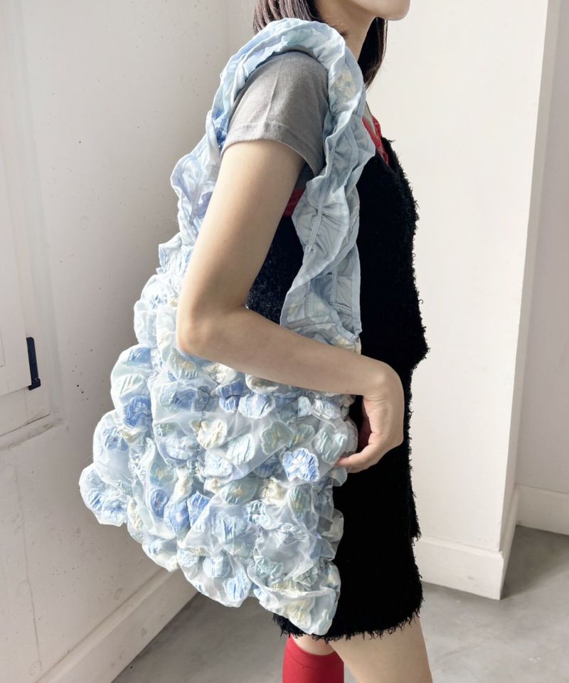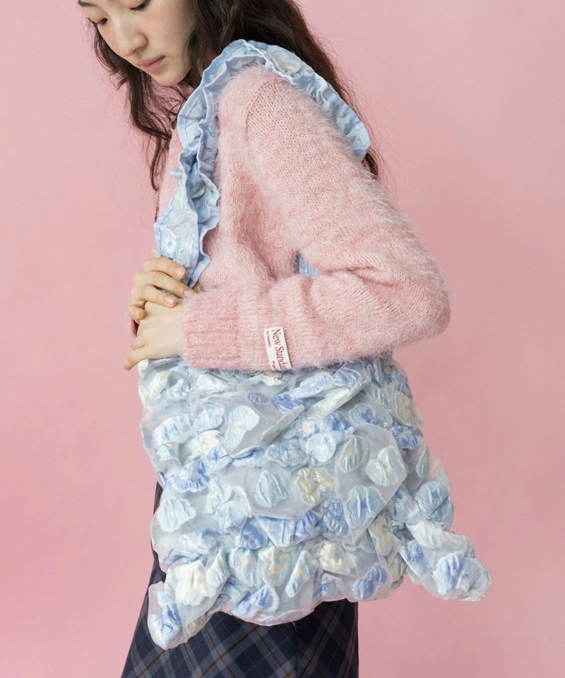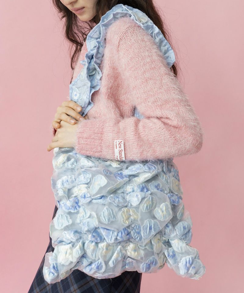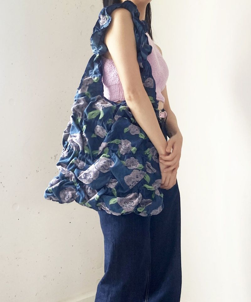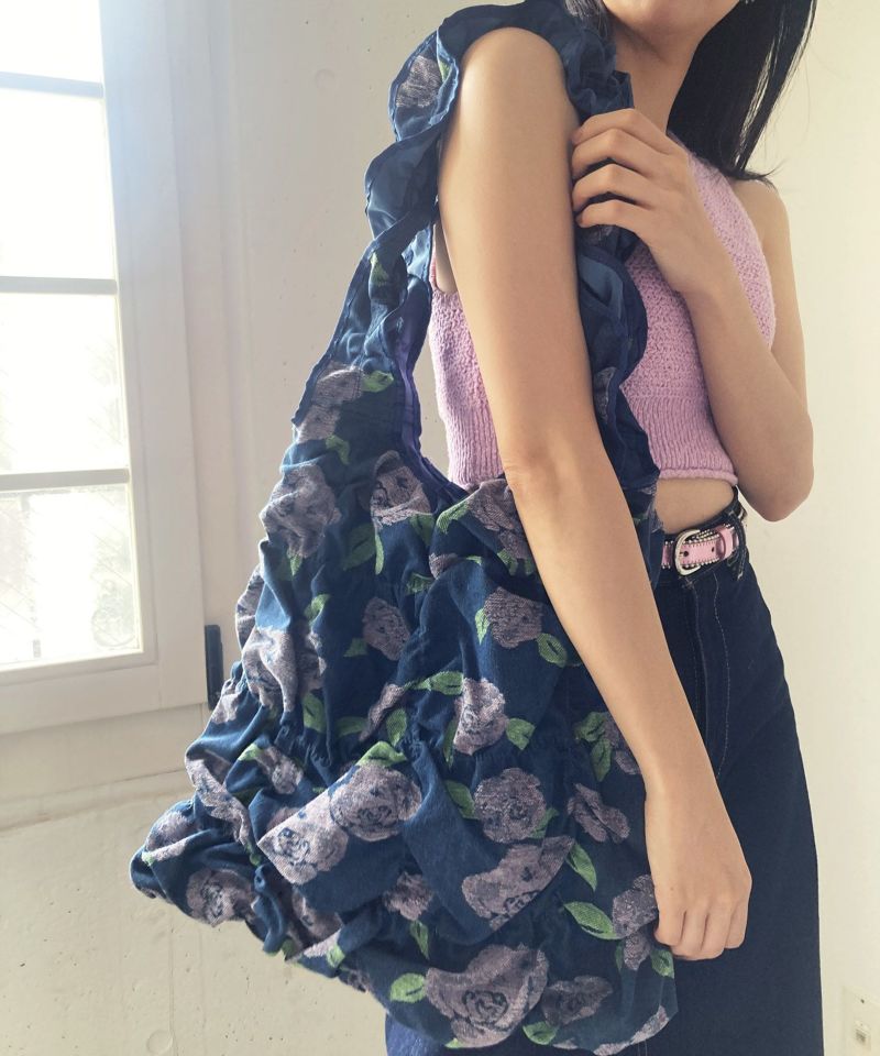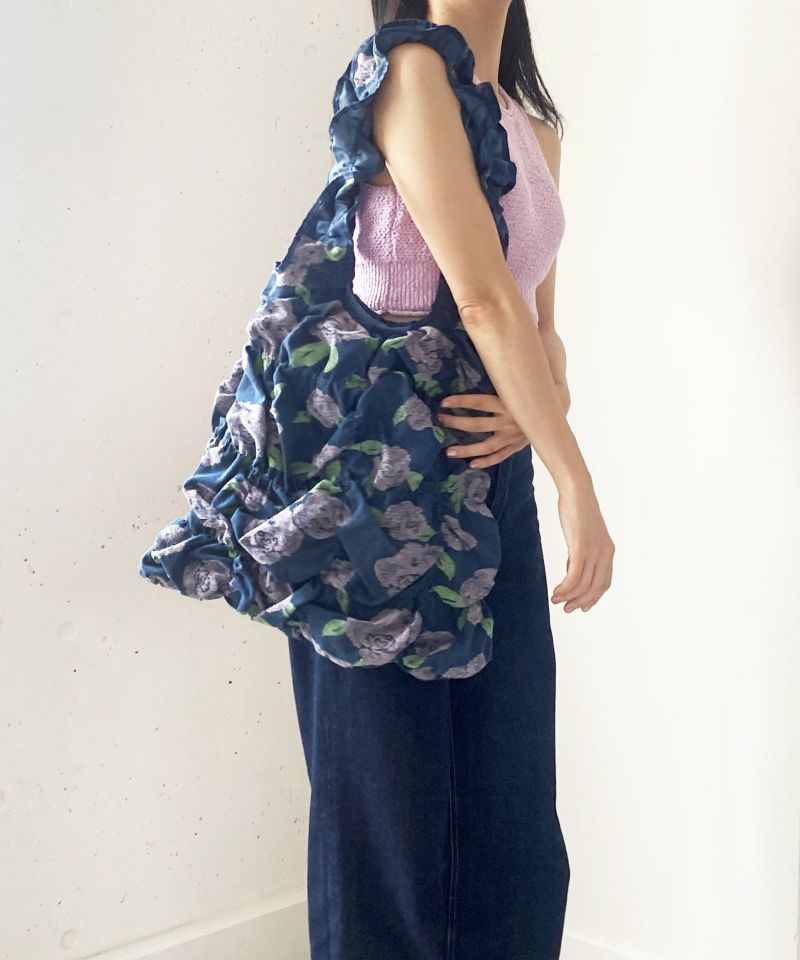 ぱっと目を引くコーディネートの主役になれるデザイン! 肩掛けのできるハンドルの長さ、裏地との異素材感がポイントです。 ラフなアイテムとのコーディネートがおすすめ。