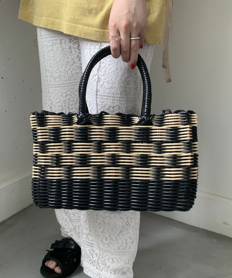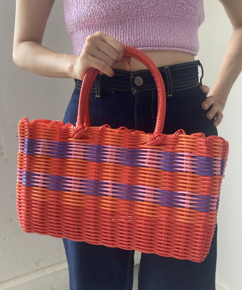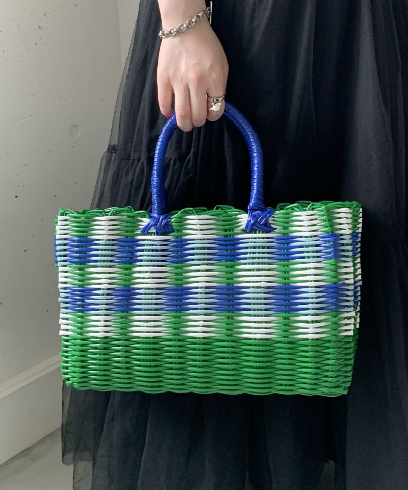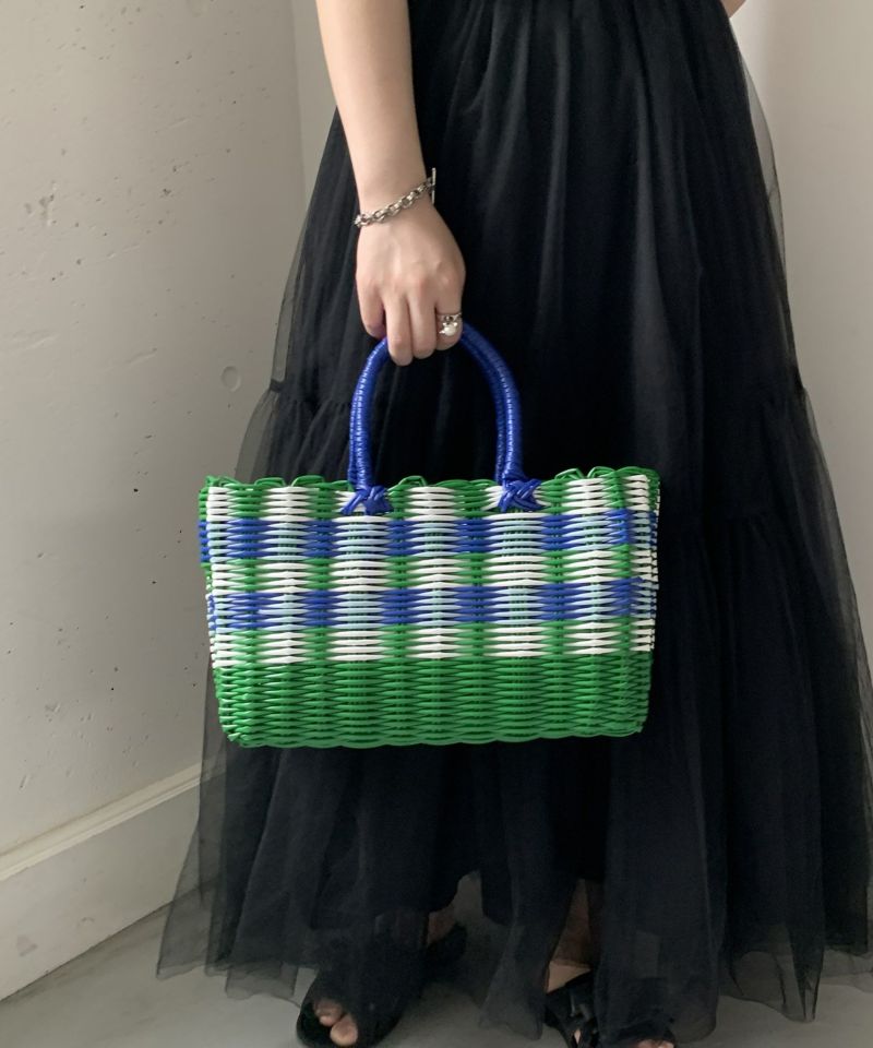 チェック柄のように編んだ夏にピッタリのかごバッグ。 カラフルな色がコーディネートのアクセントに! 水に強く丈夫なため、レジャーシーンや雨の日などにもピッタリのアイテムです。