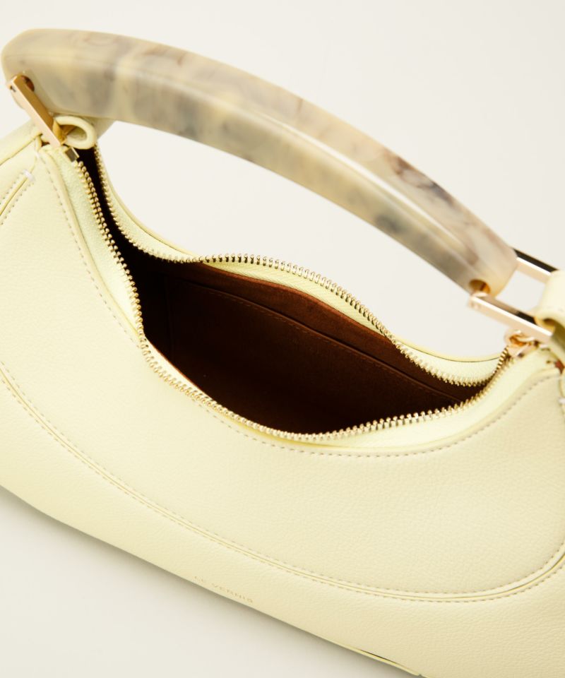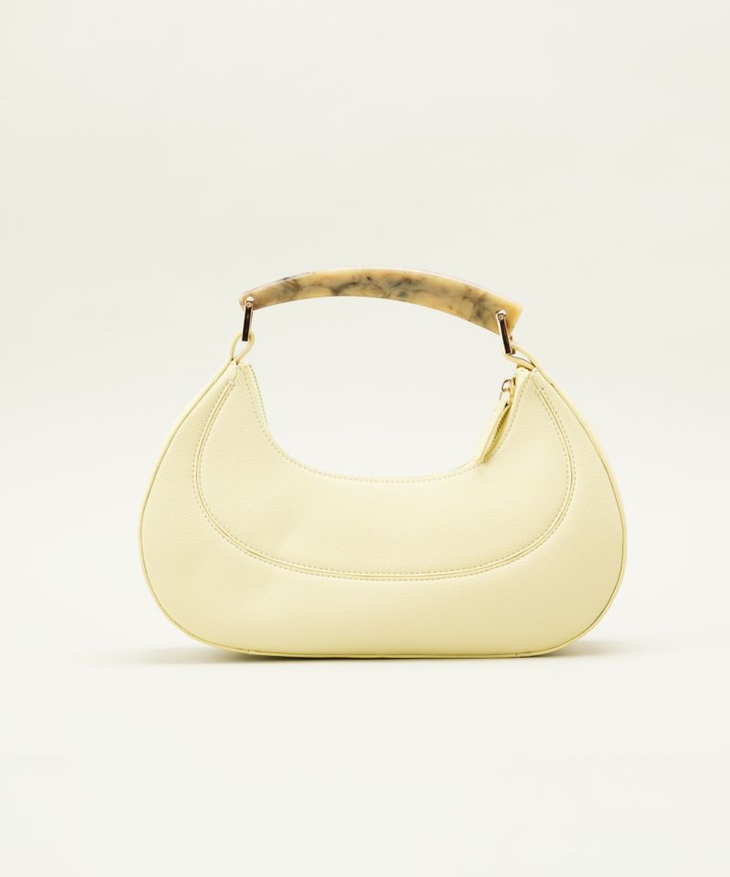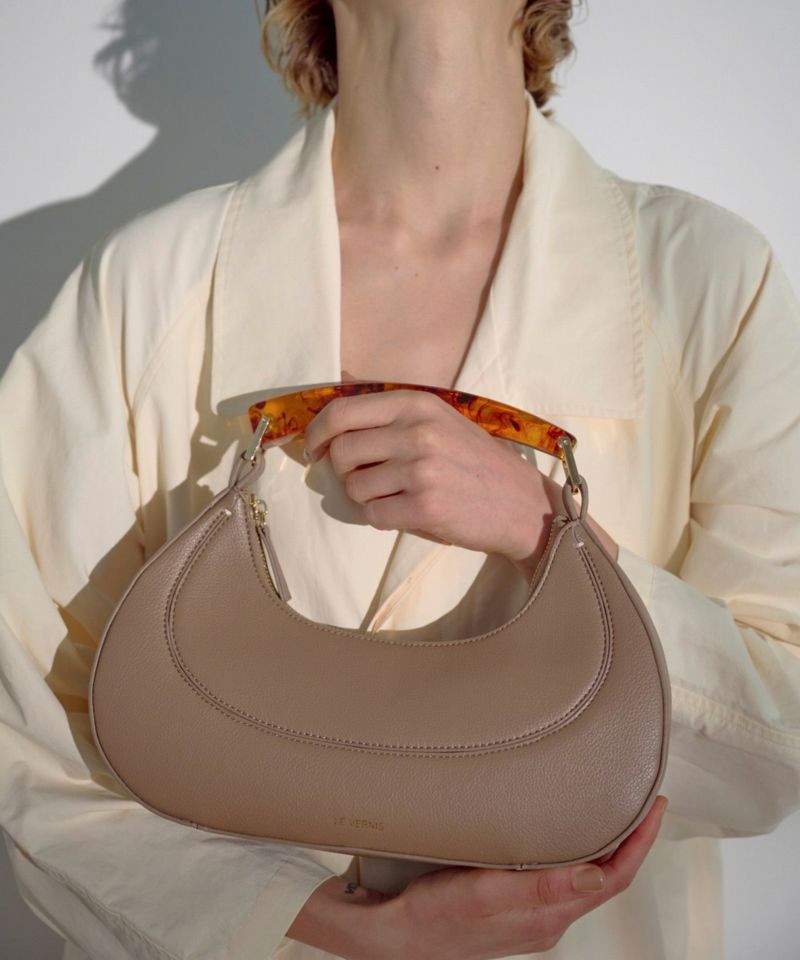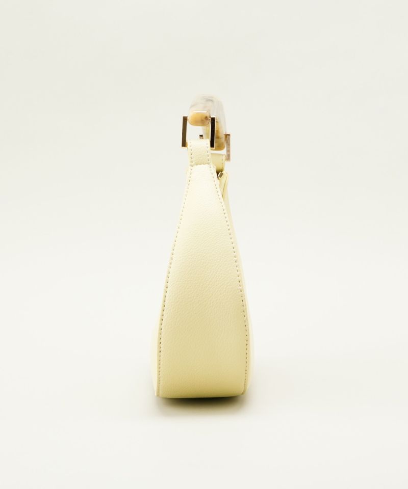 丸みを帯びた上品なシルエットのバッグ。 アクセサリーのような華やかさをプラスする、マーブル模様のアクリルハンドルがポイント。 本体には、柔らかくなめらかな手触りが魅力の、シボ感のあるフェイクレザー素材を使用しています。 ・上品な丸みのあるシルエット ・印象的なステッチディティール ・華やぎを添えるマーブル模様のハンドル ・シボ感ある柔らかくなめらかなフェイクレザー素材 ・ハンドルはLE VERNISオリジナルカラー ・安心感のあるファスナータイプの開口部 ・内ポケットあり ・380g