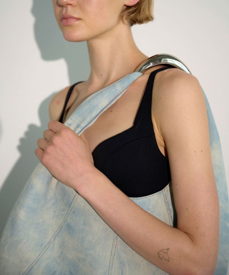 LE VERNIS定番のsculpture bag Mが、トレンドライクなデニム生地で登場。 デニムに合うよう、切り替え部分には両側にステッチを入れるなど、細部にこだわって仕上げました。 多めの荷物もしっかり収納できる大きさで、デイリーに活躍します。 ・人気の定番アイテムがデニム素材で登場 ・印象的な丸みのあるフォルム ・LE VERNISオリジナルの彫刻的なハンドル ・ノートPCも仕舞える大きめサイズ ・出し入れしやすい大きく開く開口部 ・スマホなどの収納に便利な内ポケット ・320g ▶ Sculprure jean S はこちら < SCULPTURE > 彫刻的なハンドルは、LE VERNISオリジナル。グリップしやすいように何度も改良を重ね、程よいアーチが手や肩に馴染む、持ちやすい仕上がりになっています。 ※こちらの商品は素材の性質上、摩擦や雨・汗で湿った場合、色落ちすることがあります。 予めご了承いただき、ご使用の際にはご注意くださいますようお願いいたします。