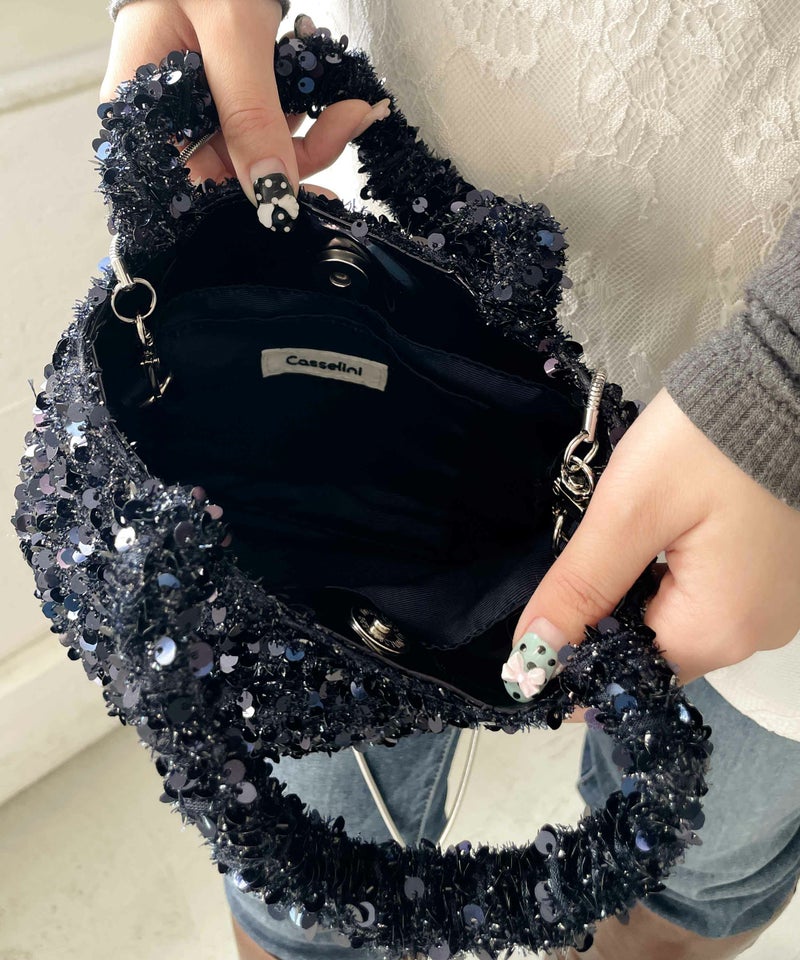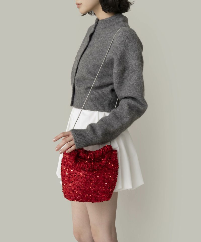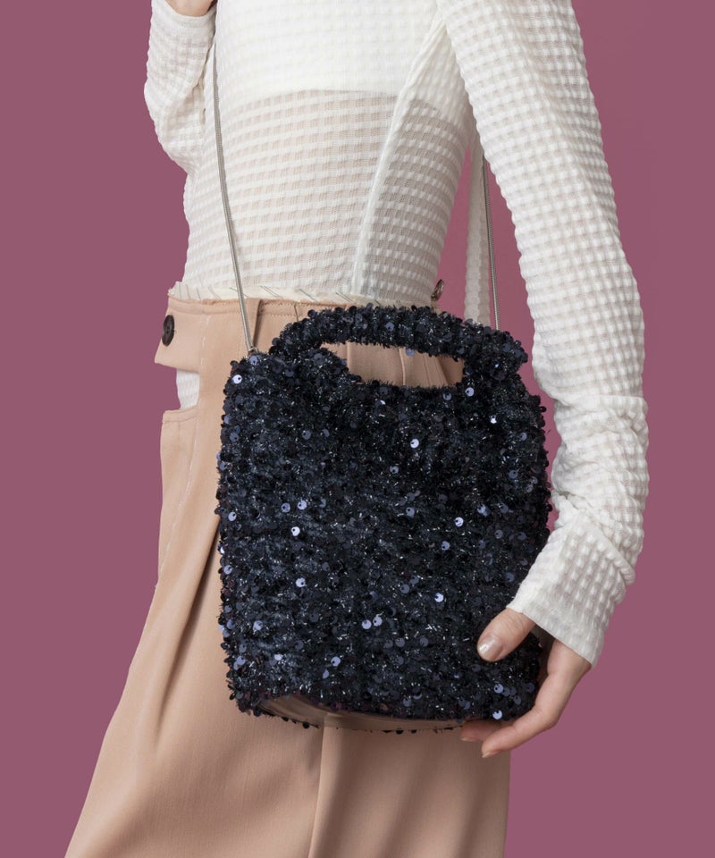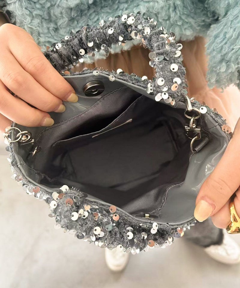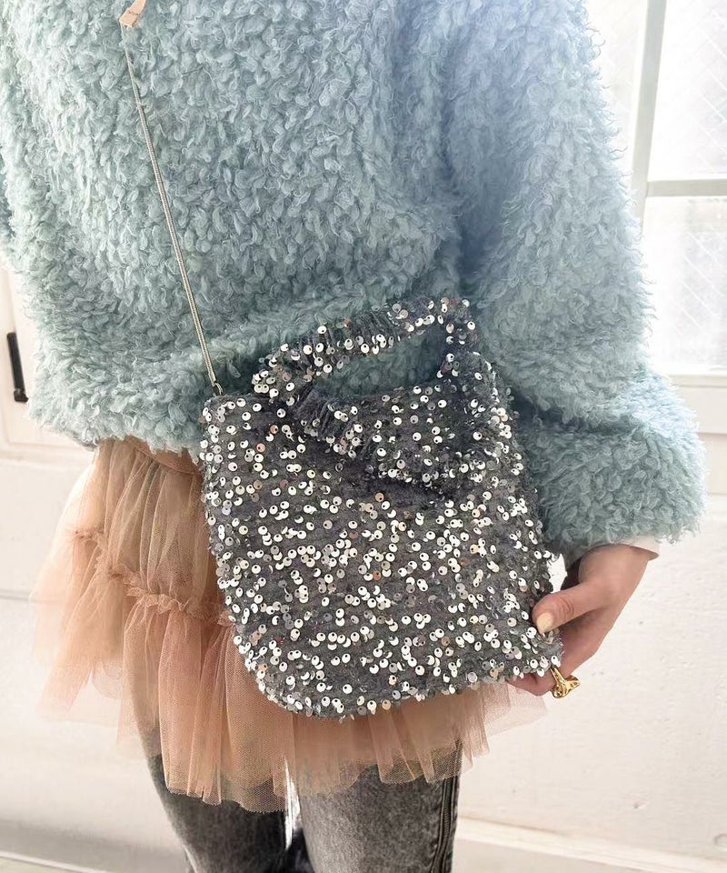 華やかなスパンコール素材が魅力のショルダーバッグ。 取り外し可能なチェーン付きで、同系色の合皮を部分使いした高級感あるデザイン。 ミニ財布やスマホなどが入るちょうどいいサイズ感で、普段使いからお呼ばれシーンまで活躍します。
