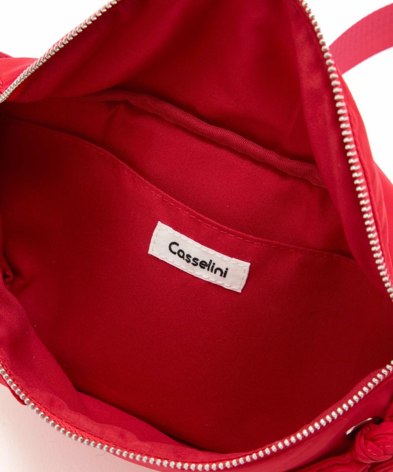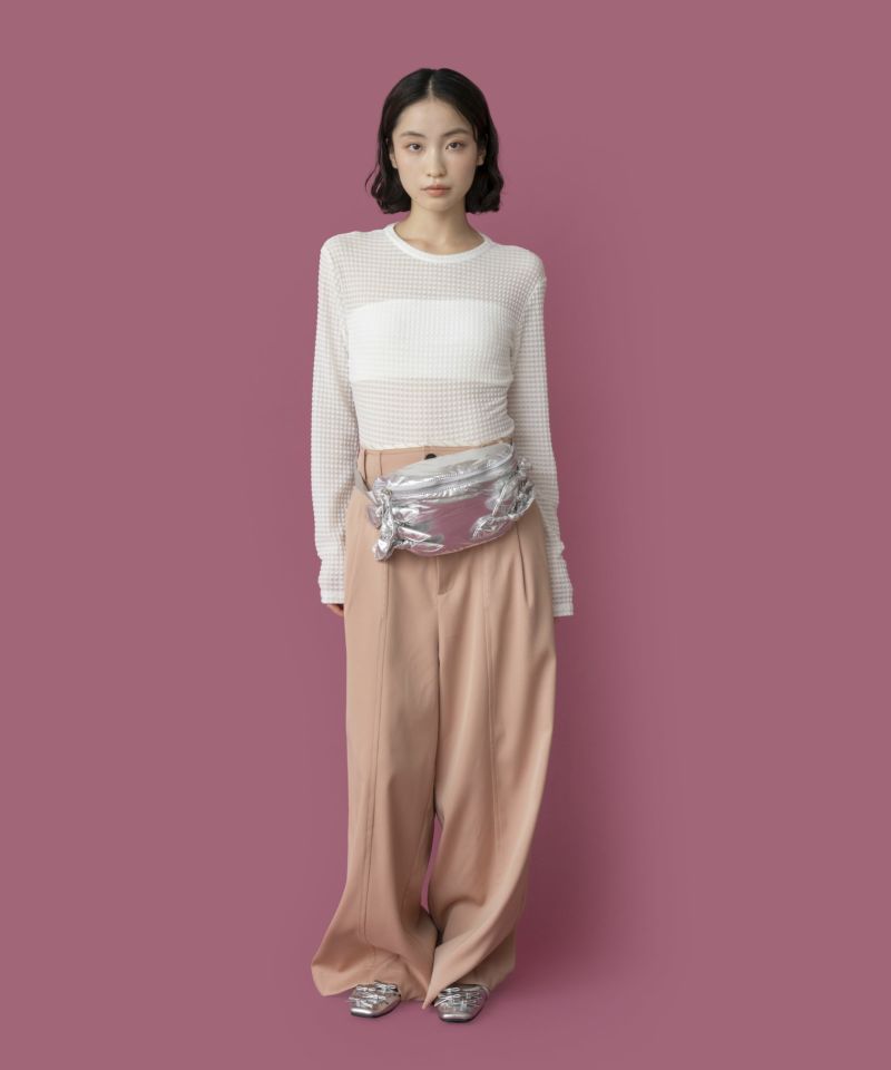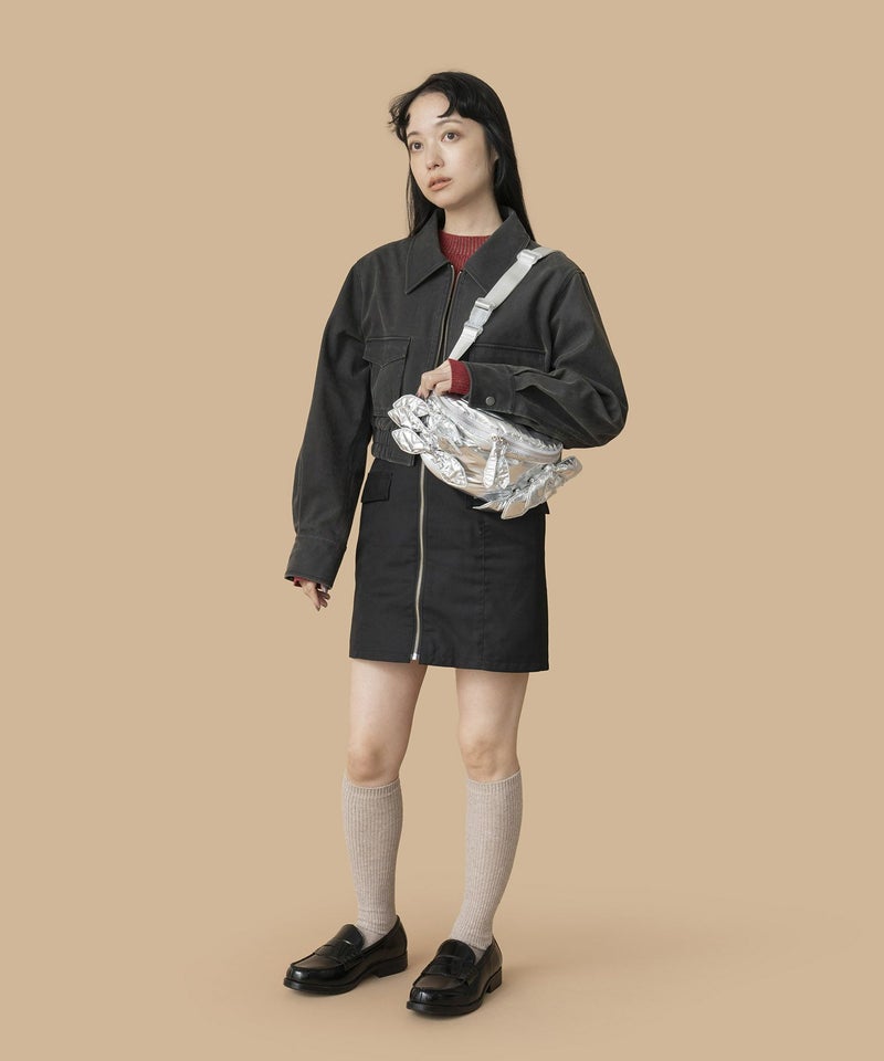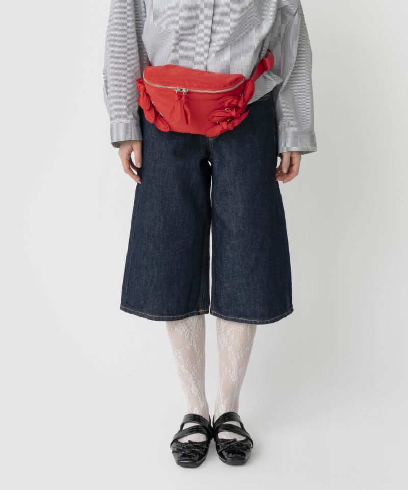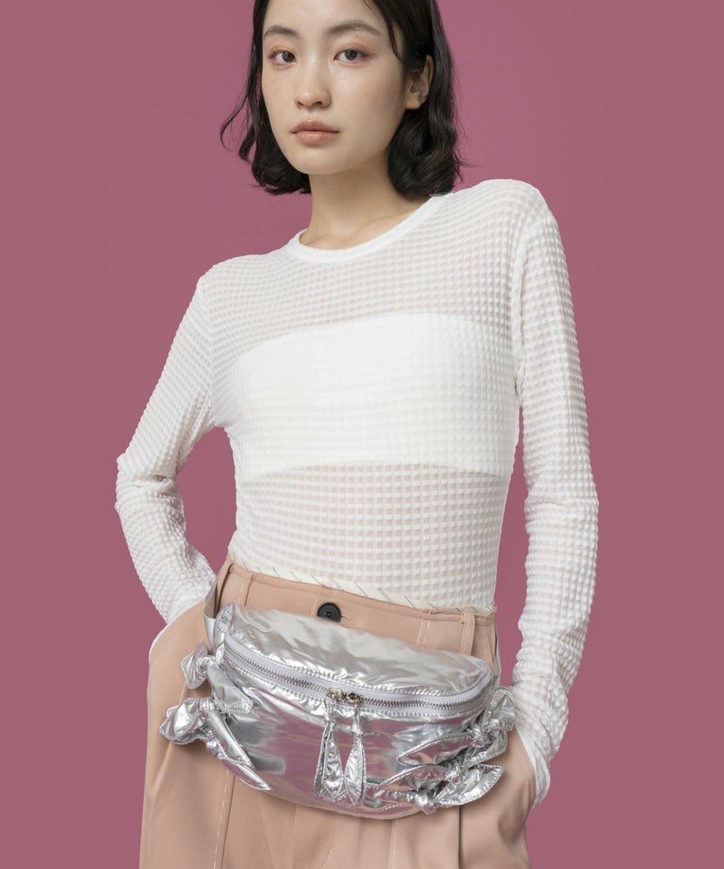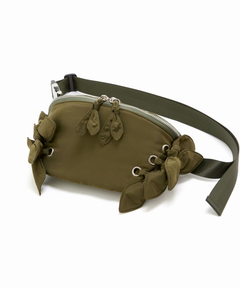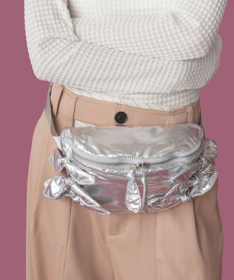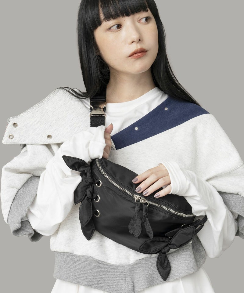 光沢感のある軽量素材を使用したリボン付きウエストポーチ。 ショルダーの長さ調整が可能で、斜め掛けやワンショルダーとしても使える2WAY仕様。 三つ折り財布や小さめポーチ、ハンカチが入る実用的なサイズ感で、旅行やアウトドアにも最適です。 デニムやスニーカーなどのカジュアルコーデはもちろん、ワンピースに合わせた“外し”アイテムとしてもおすすめです。