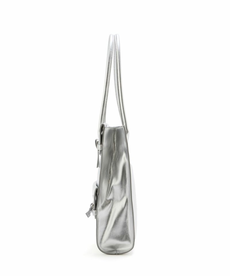 シルバーは単色展開、ブラックはクロコ素材とコンビにしており異素材MIXに。
