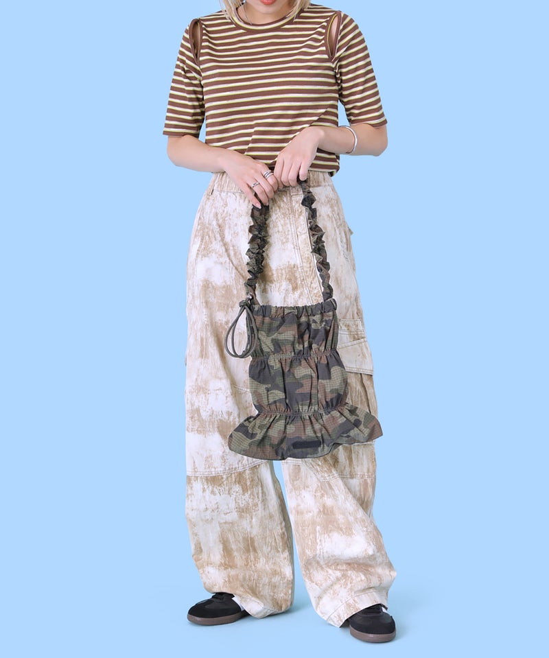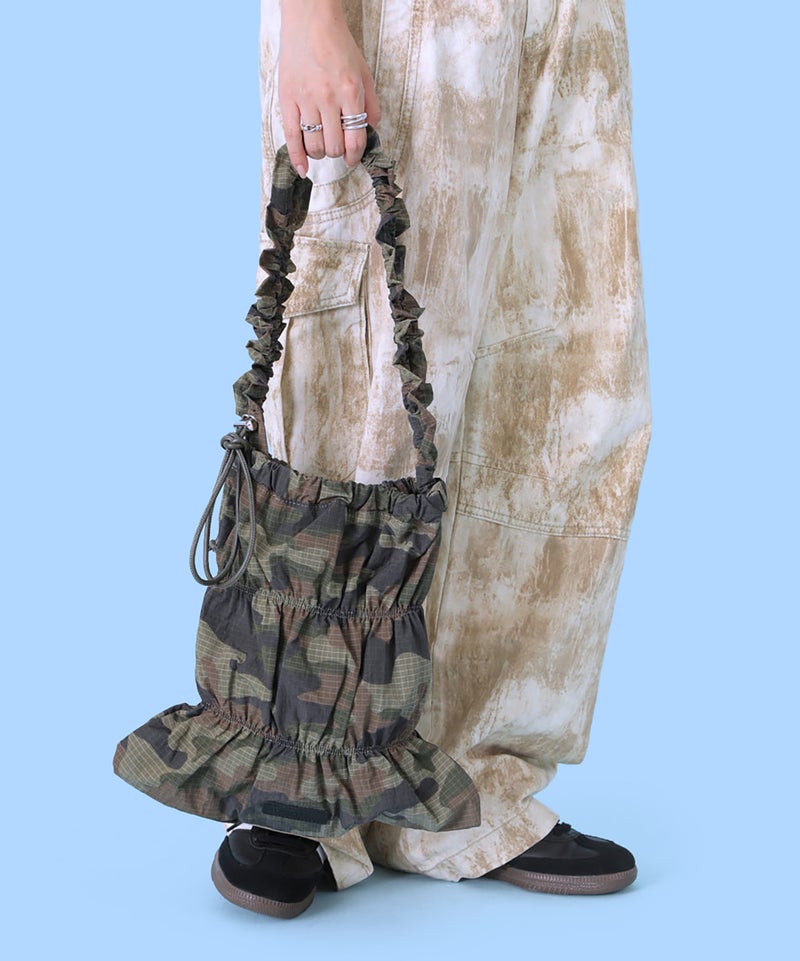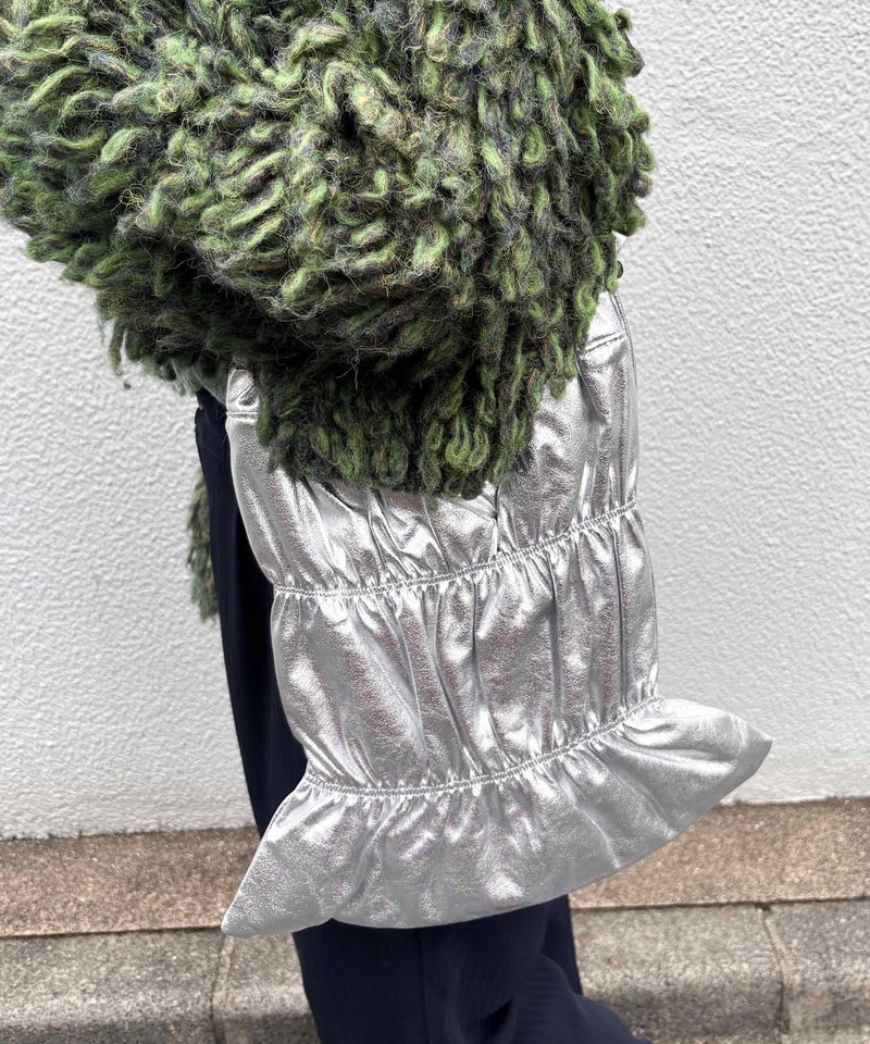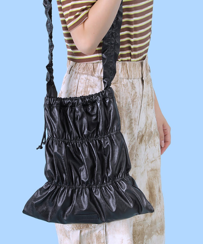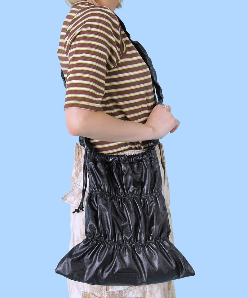本体に施されたシャーリングが、ふんわりとした立体感とフェミニンさを演出する2WAYバッグ。