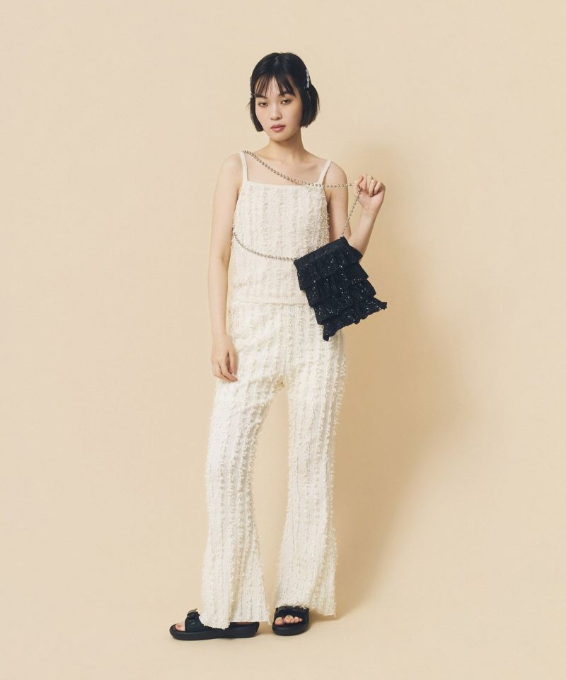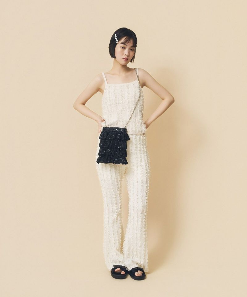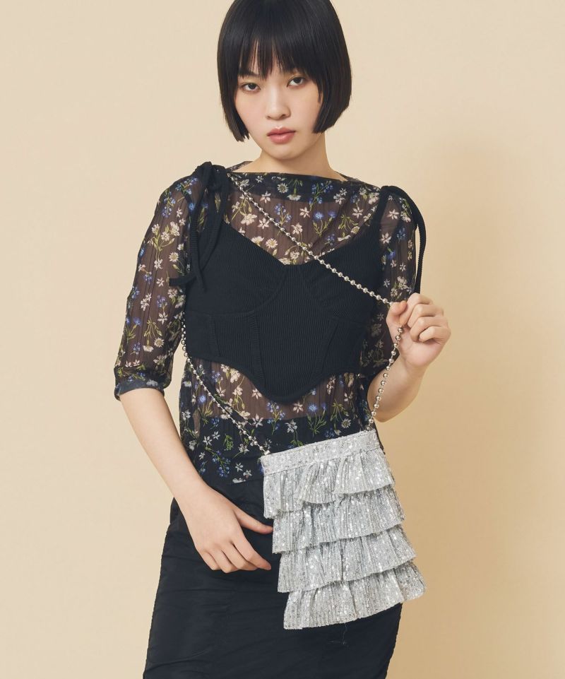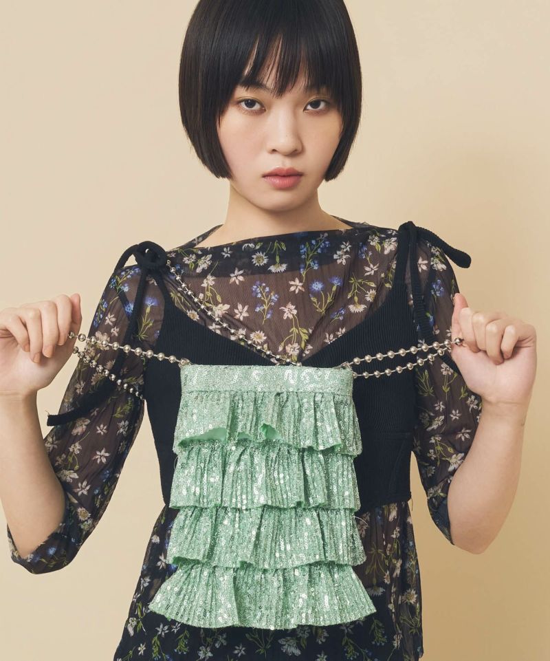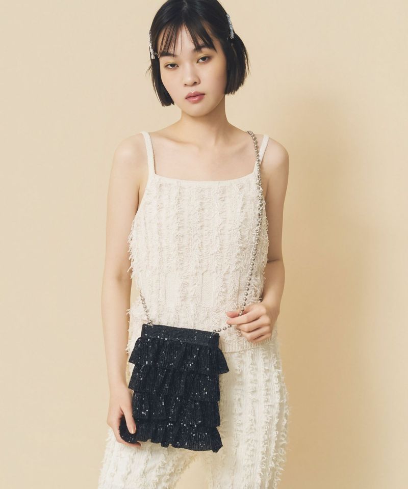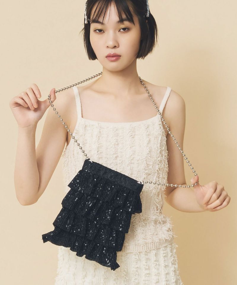 Casselini定番のフリルポシェットから、メタリックヤーンとスパンコールを編み込んだプリーツ素材が登場。