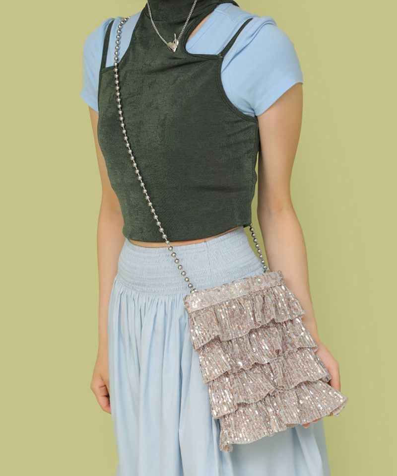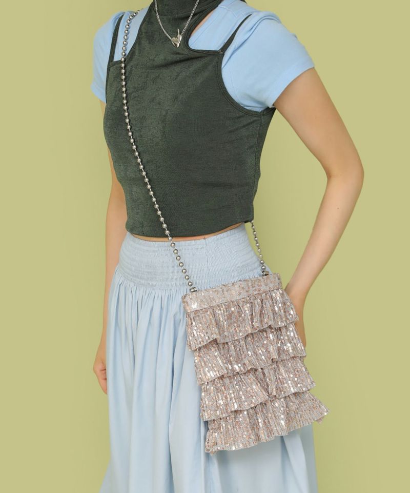 Casselini(キャセリーニ)キラキラフリルプリーツポシェット