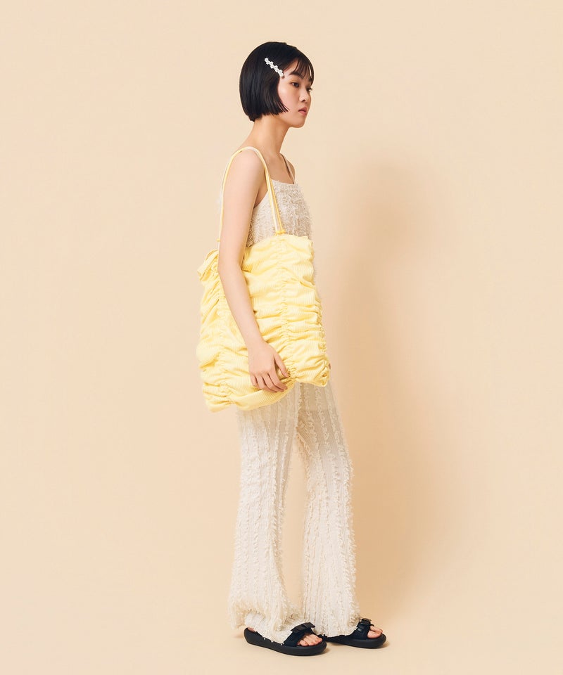 くしゅくしゅとしたデザインが可愛い、ちょっぴり遊び心のあるトートバッグです。