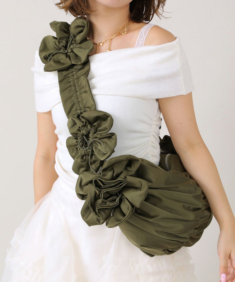 立体的な花モチーフが、どの角度から見ても映えるデザイン。