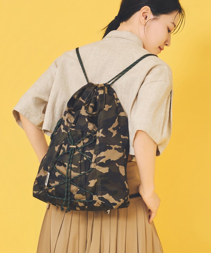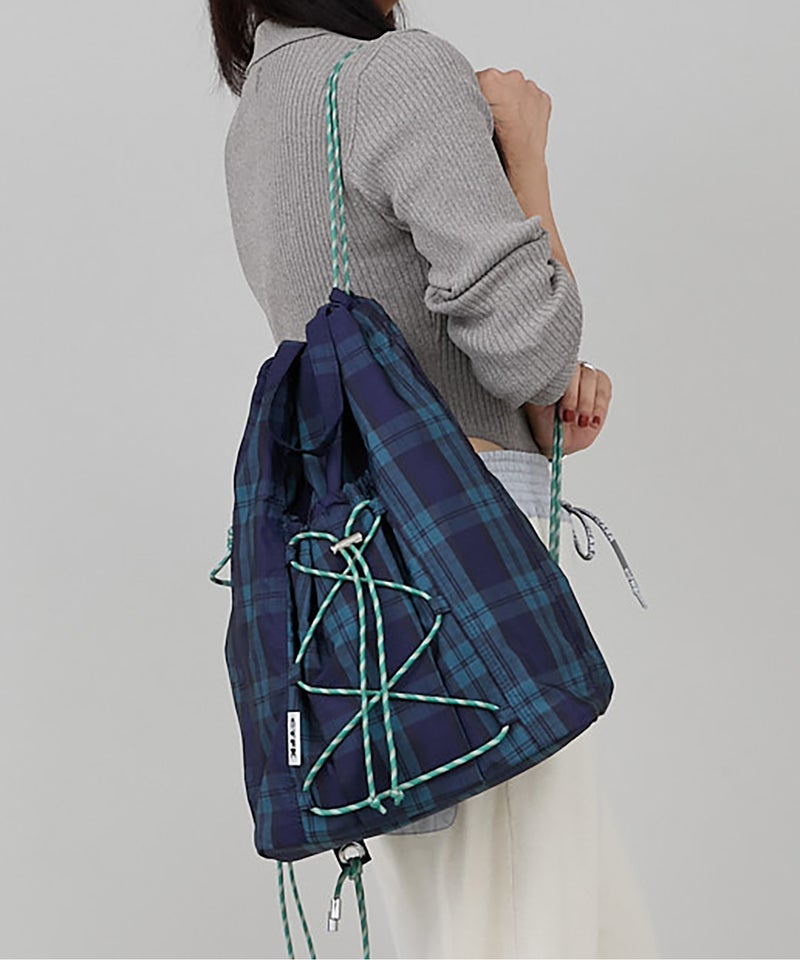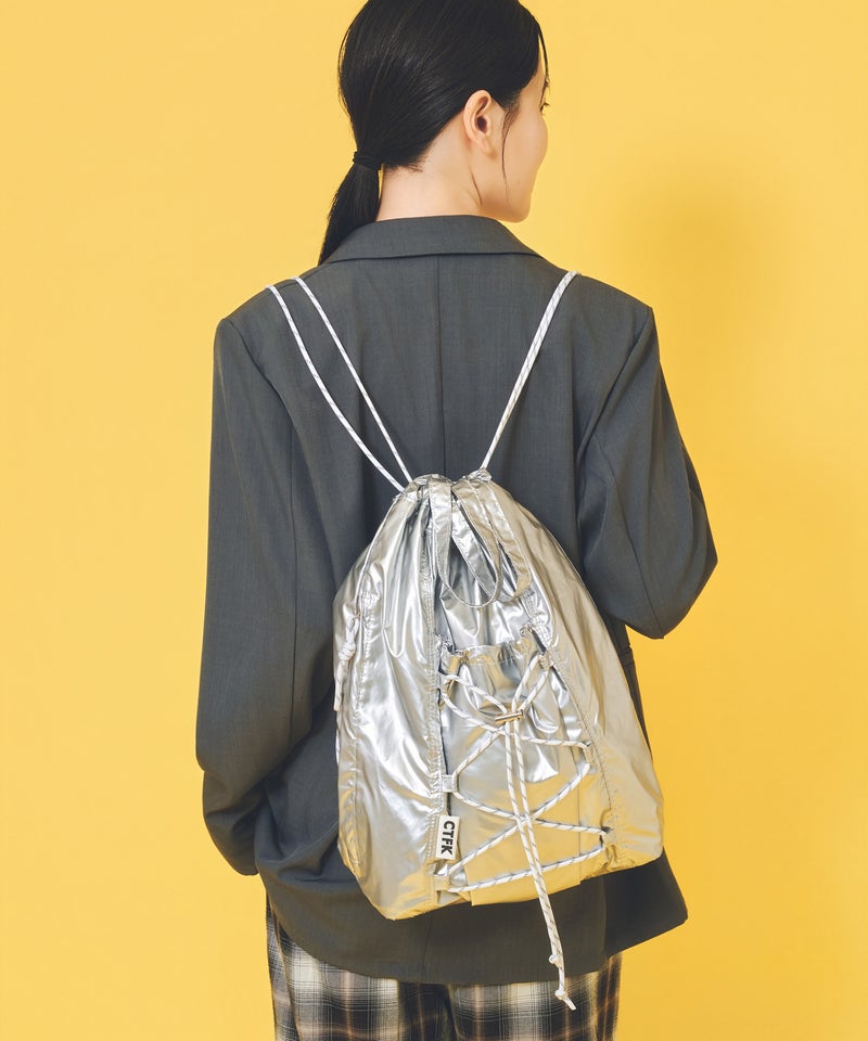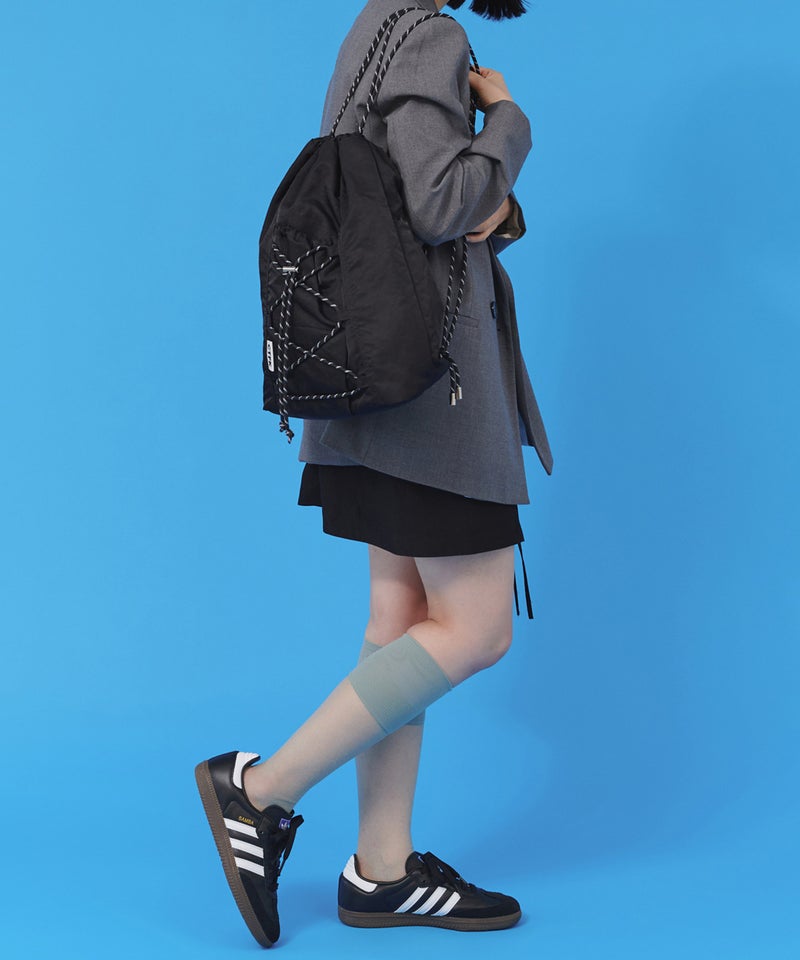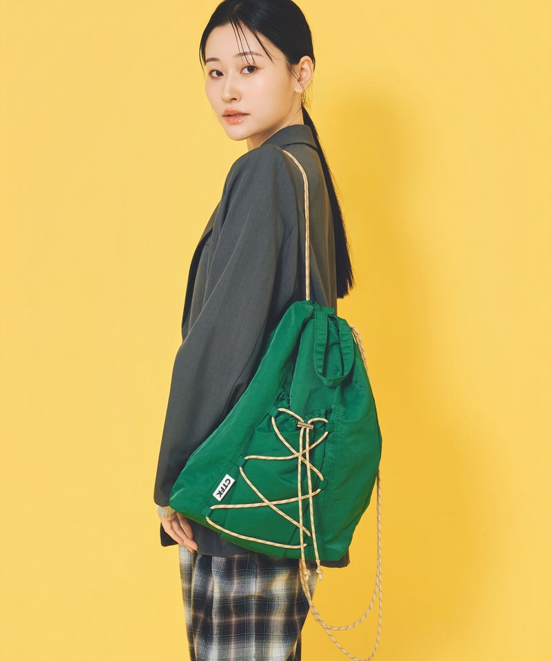 フロントのドローコードがアクティブな印象のナップサック。
