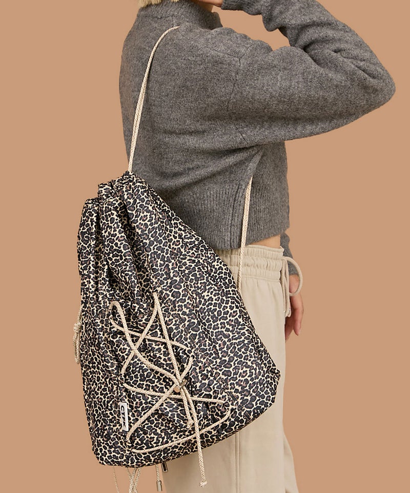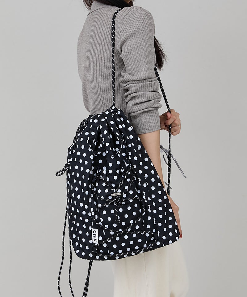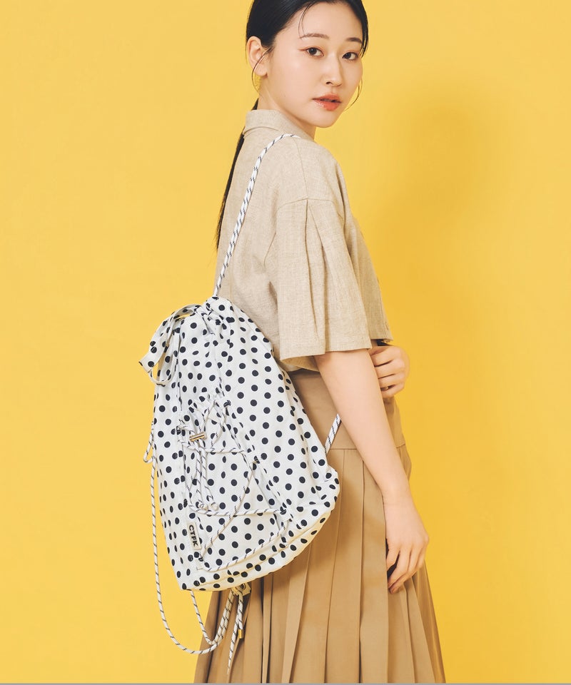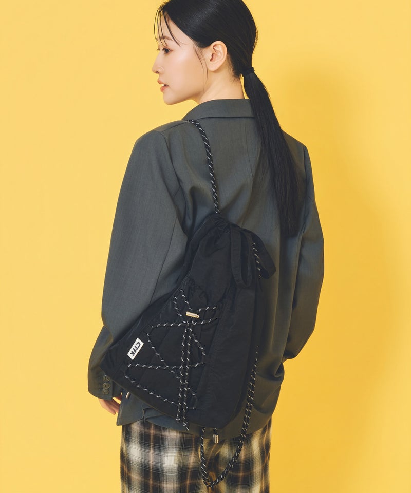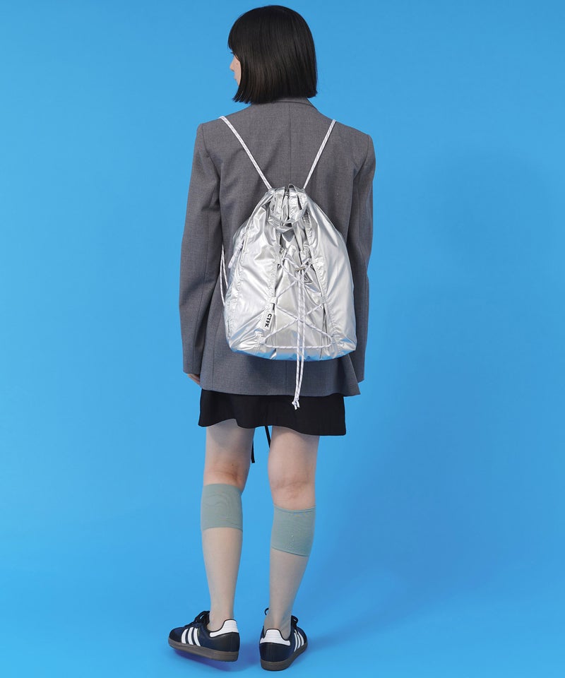 フロントのドローコードがアクティブな印象のナップサック。