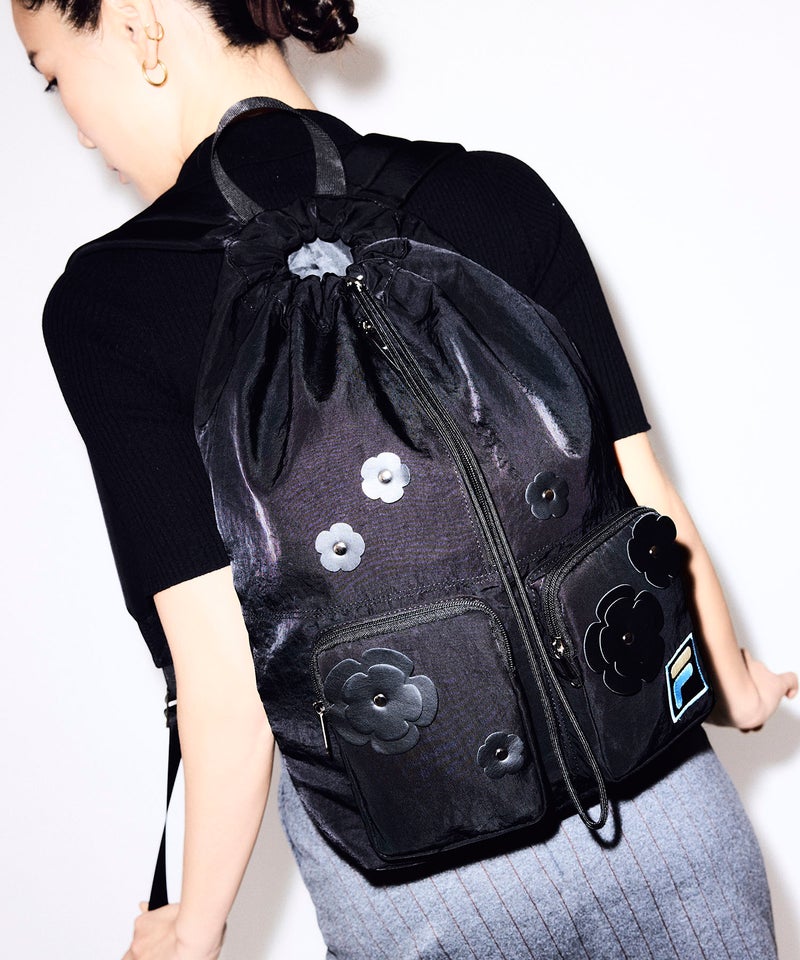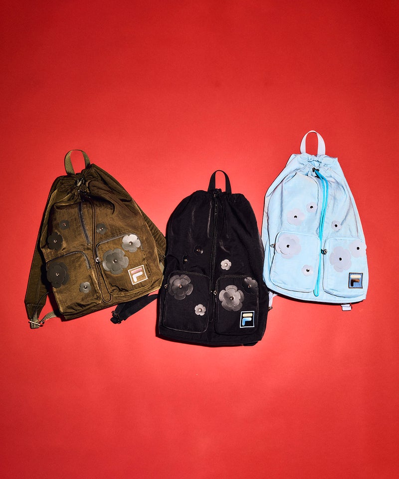 スポーティなFILAのロゴと、Casseliniを象徴する立体的なフラワーモチーフを掛け合わせた、遊び心あふれる別注バックパックです。