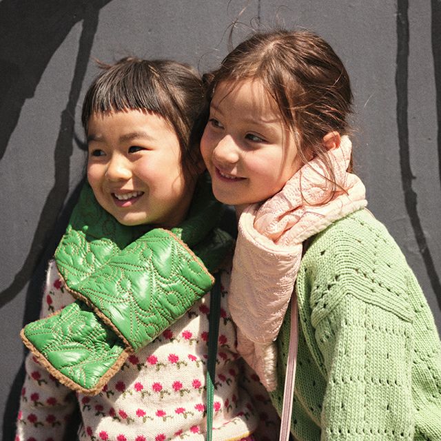 人気のチューリップのキルティングを使用したマフラーです。 差し込み式の仕様のためサイズ感の調整ができるため体の成長に合わせて使っていただけるような仕様になっております。
