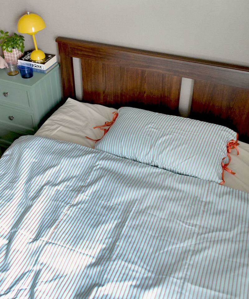 こだわりの配色ストライプが可愛い布団カバーと枕カバーセット。