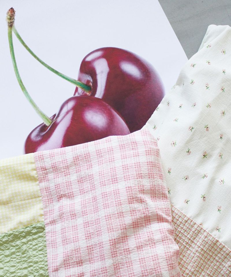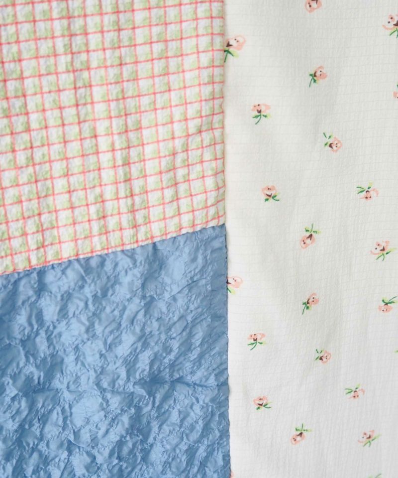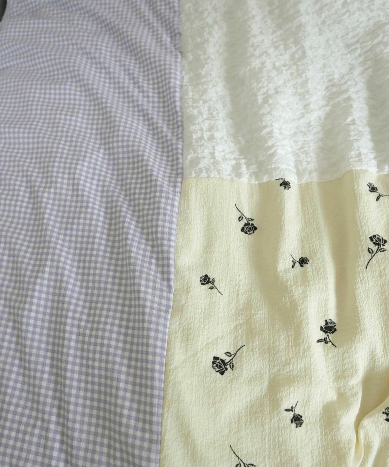 Casseliniらしい柄素材とシャーリング素材をパッチワークした布団カバー。