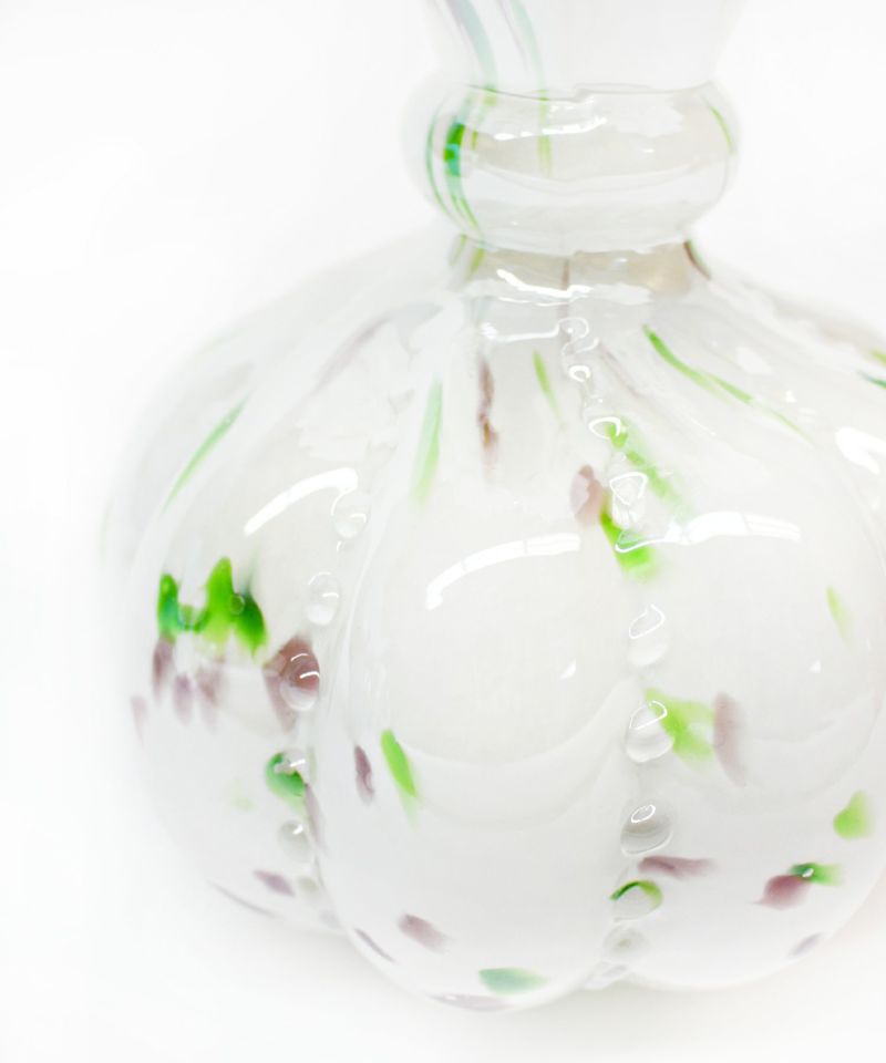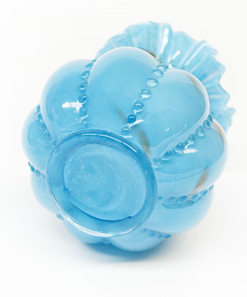 鮮やかなカラーとヴィンテージ調のシルエットが魅力のガラスフラワーベース。