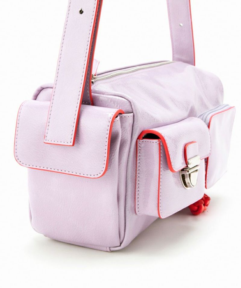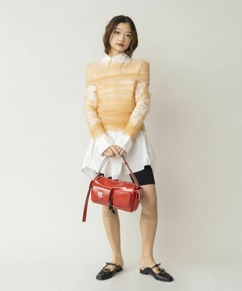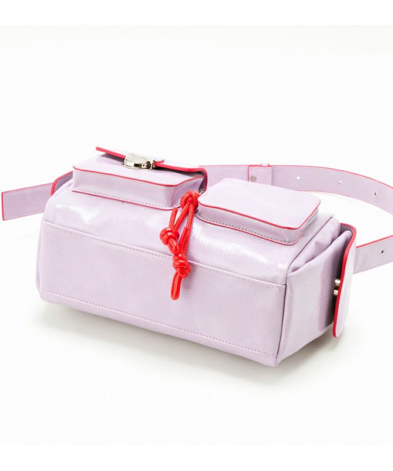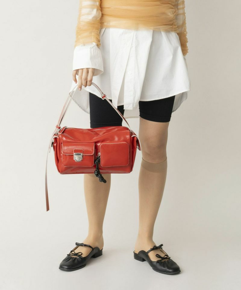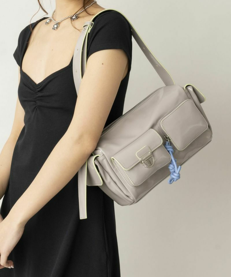 複数のポケットが可愛い、トレンド感と利便性を兼ね備えたショルダーバッグ。 シワエナメルのツヤ感、ぱっと目を惹くコバカラーと引手パーツの差し色がポイント。 ワイド幅のショルダーベルトなので、荷物を入れても負荷がかかりにくく快適にご使用いただけます。 ベルトの長さを調整して、手持ち・肩掛け・斜め掛けショルダーに変更可能。 様々なシーンやコーディネイトに合わせることができます。