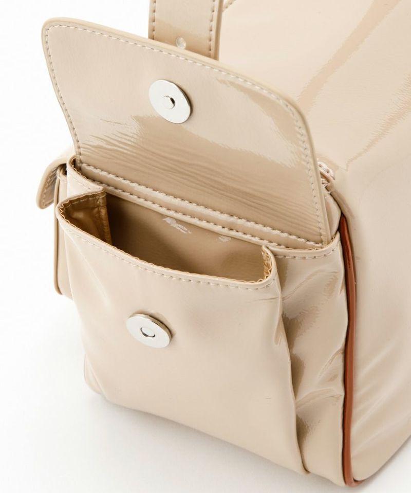 シワエナメルのツヤ感、ぱっと目を惹くコバカラーと引手パーツの差し色がポイント。