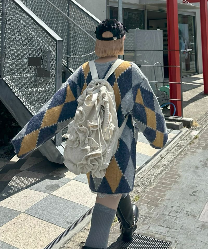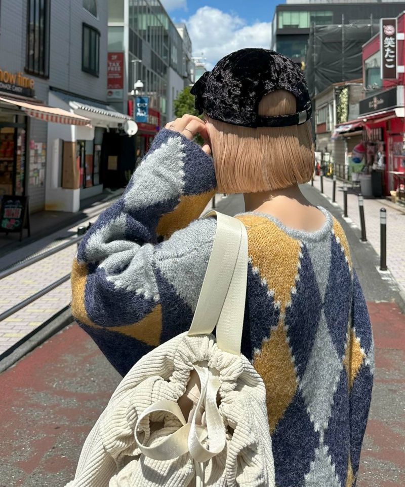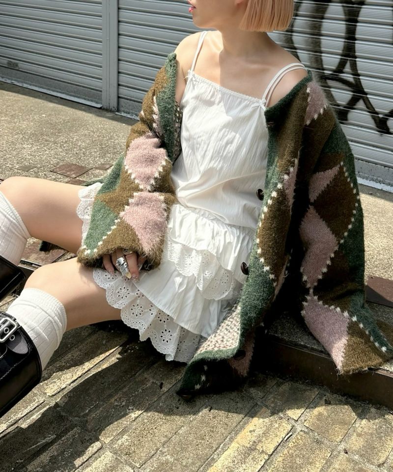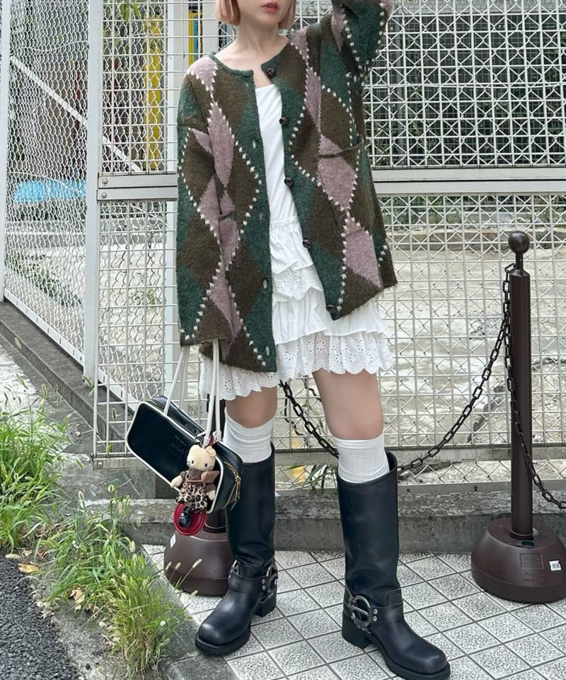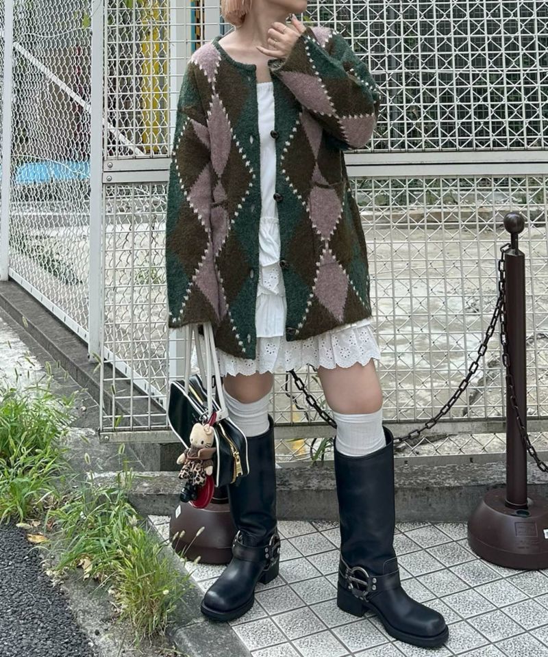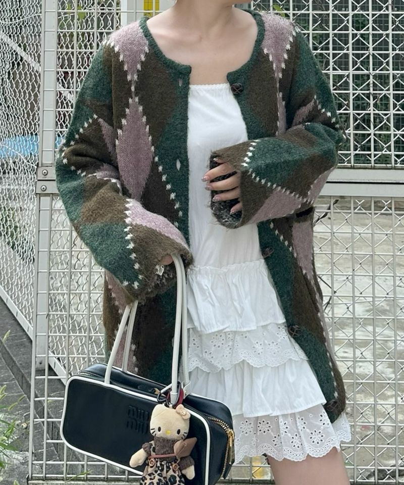 期間限定販売:【9/26(金) 20:00~10/5(日) 23:59】 【AlleyTokyo】アーガイル柄のふさふさBIGカーデ