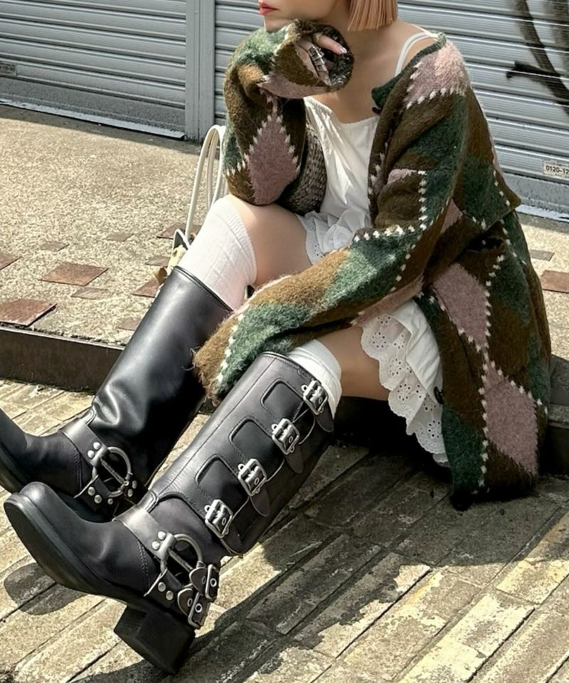 ・ムートンブーツで柔らかさをプラスするのもかわいい◎