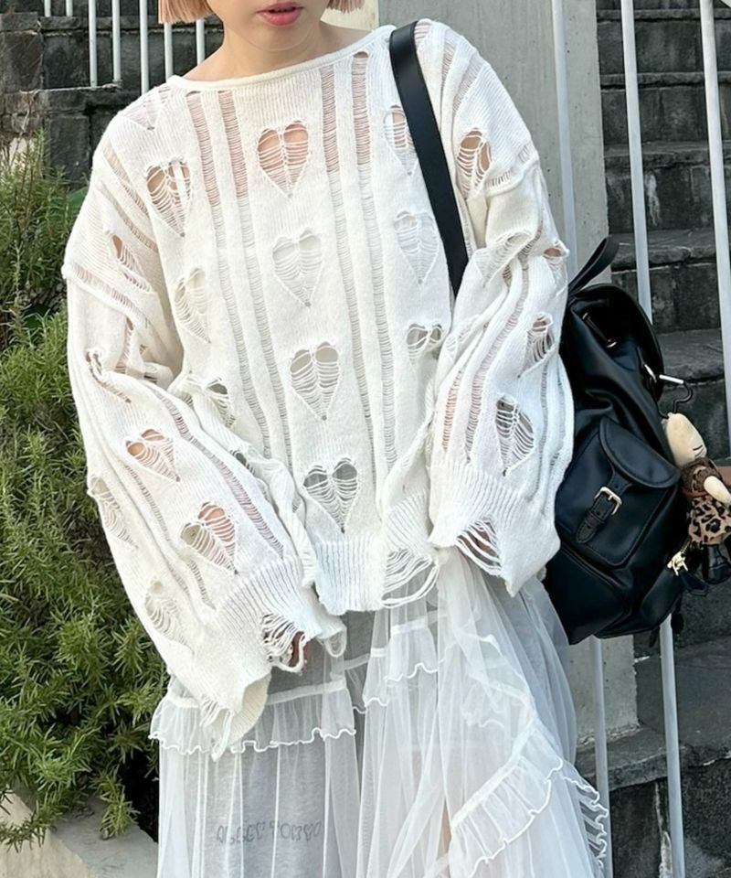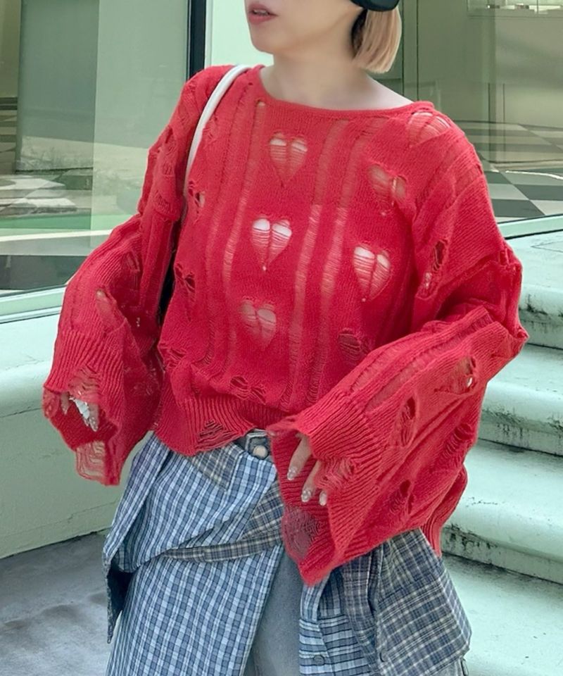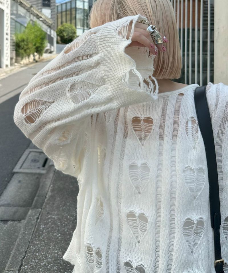 期間限定販売:【9/26(金) 20:00~10/5(日) 23:59】 【AlleyTokyo】ハートダメージニット