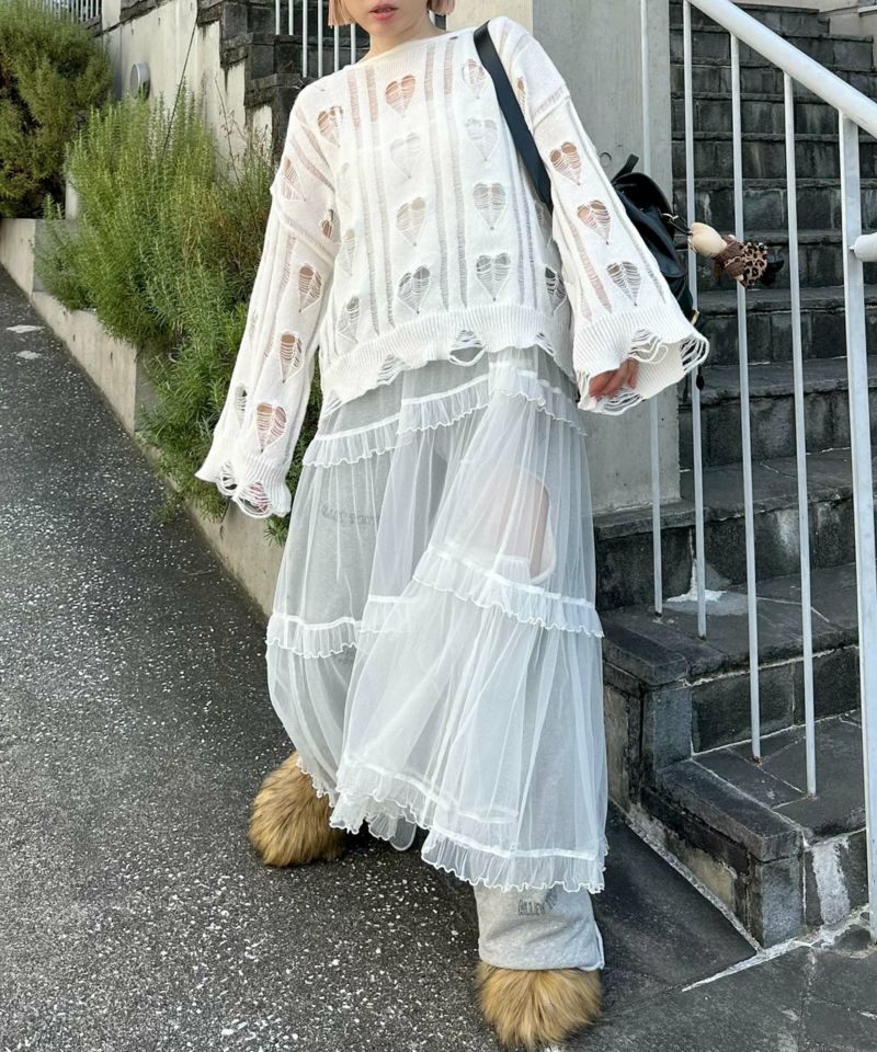 ・ワンピースの上からカポッと合わせて透け感を楽しむのもおすすめ