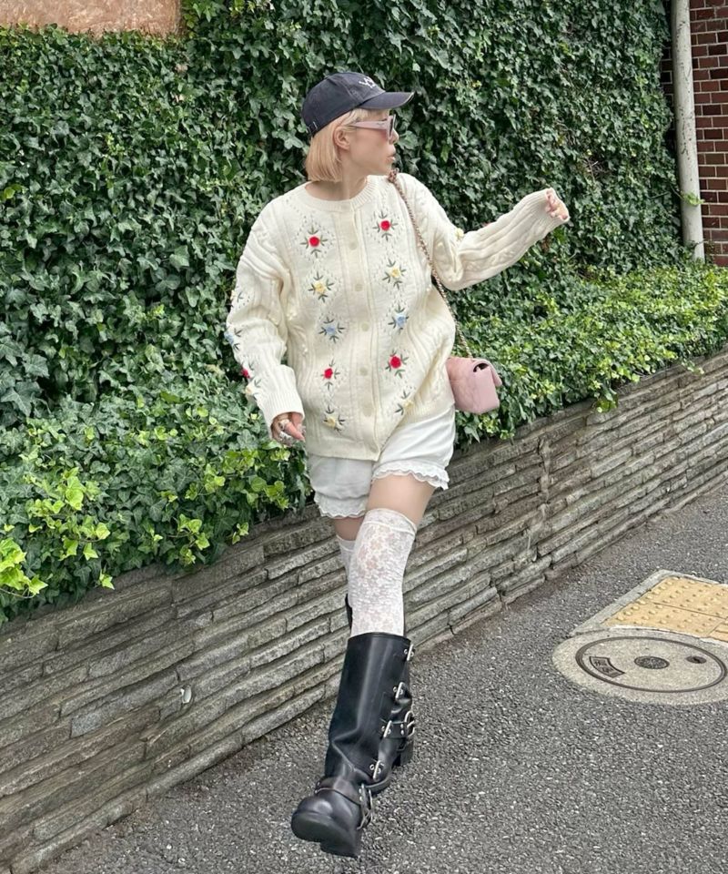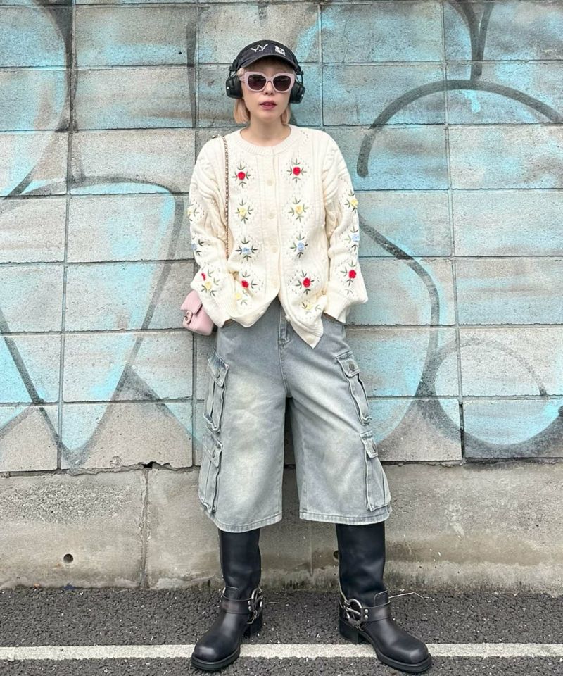 ・足元はブーツやサボ、スニーカーと合わせるのが鉄板