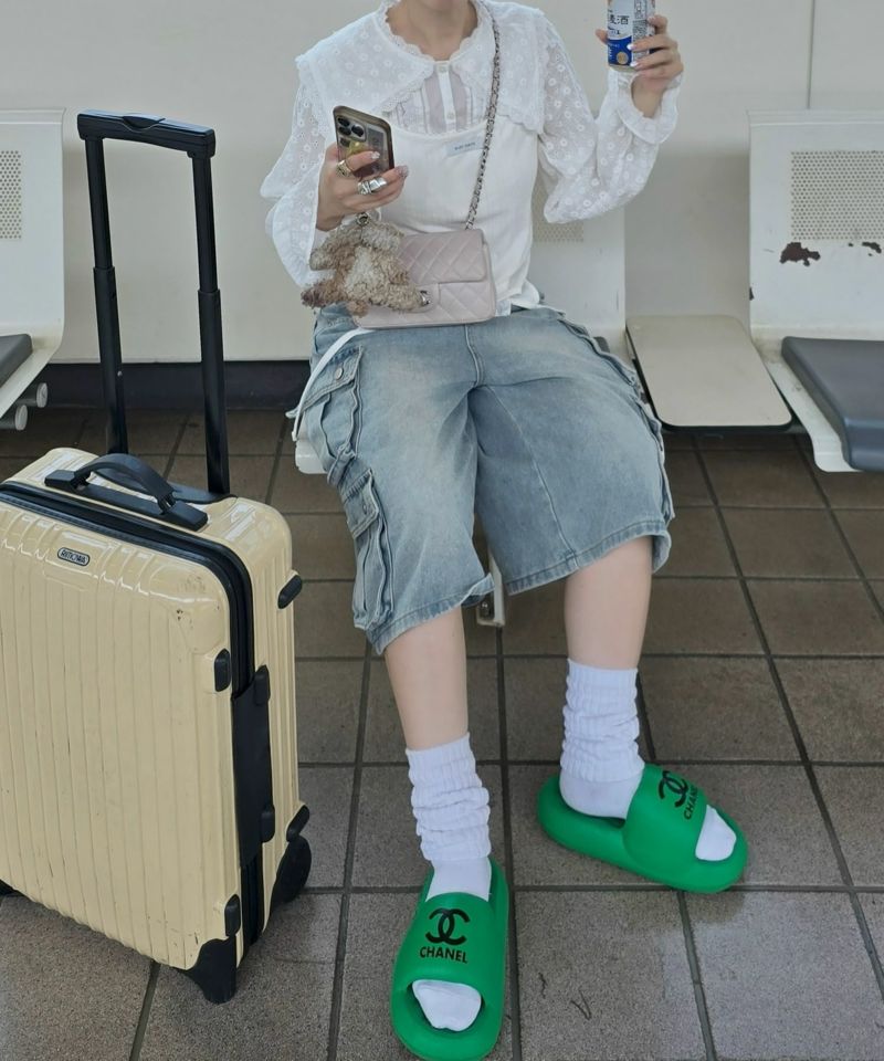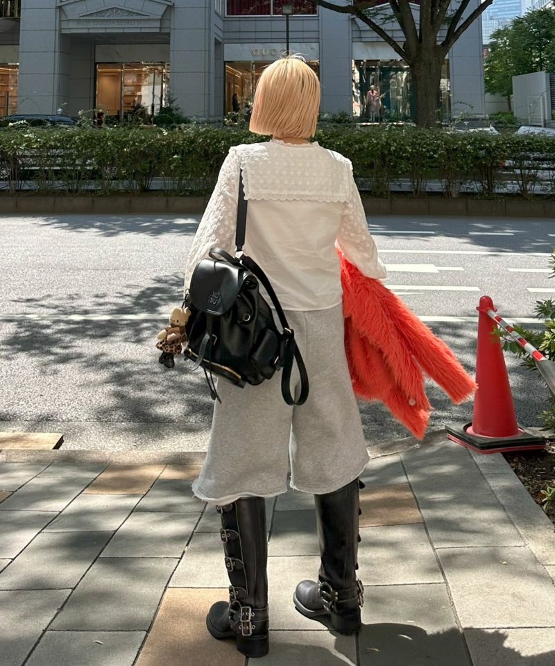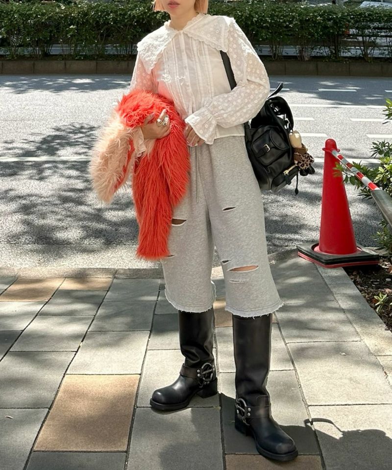 ・甘めのブラウスは、コルセットパラシュートパンツなどカジュアルなボトムで合わせるのが鉄板