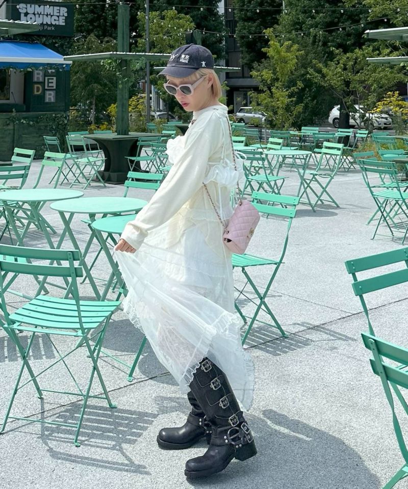 ・足元はブーツやスニーカーでカジュアルに合わせると◎