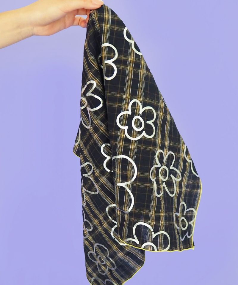 スカーフの方にはキャセさんオリジナルのお花の箔プリントをのせて、価値のある一枚に