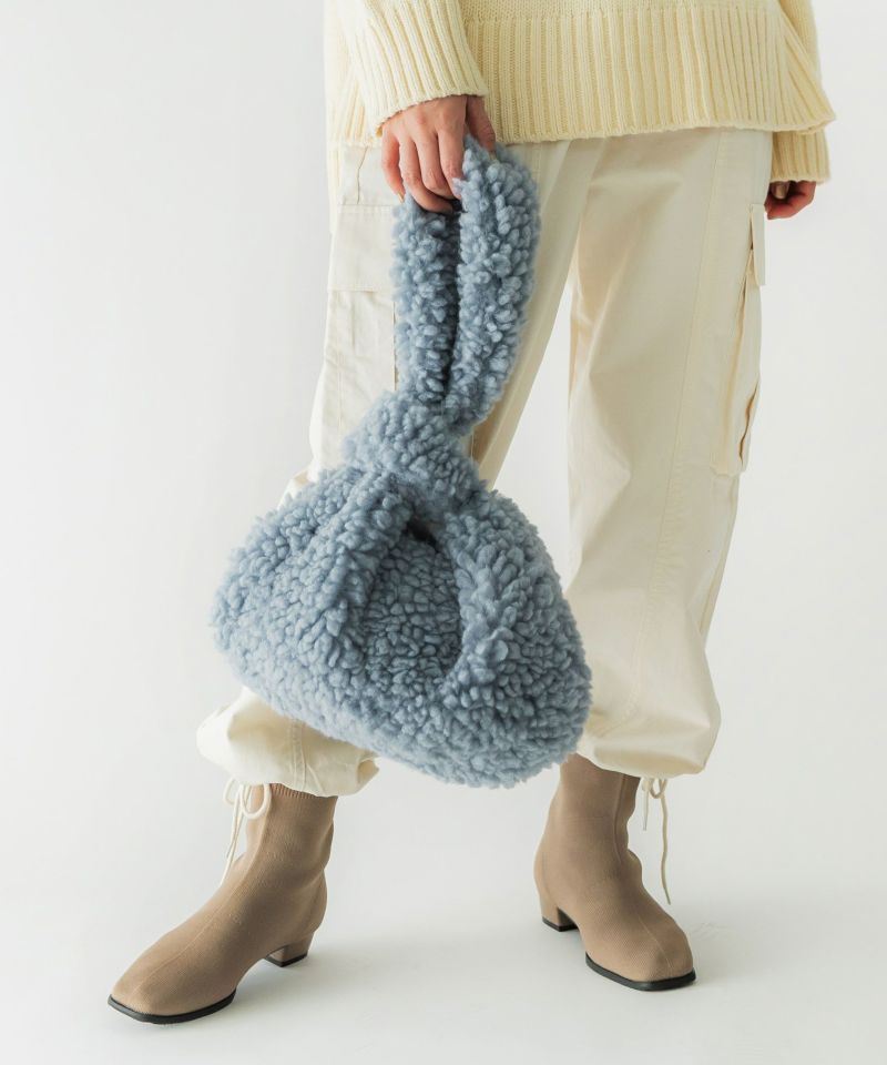 ボリュームのあるボア素材を使用したワンハンドルバッグ。