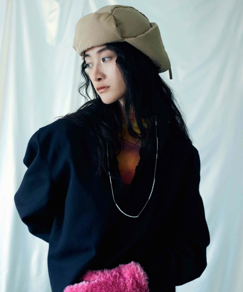 ダウンジャケットをイメージしたフライトキャップ。