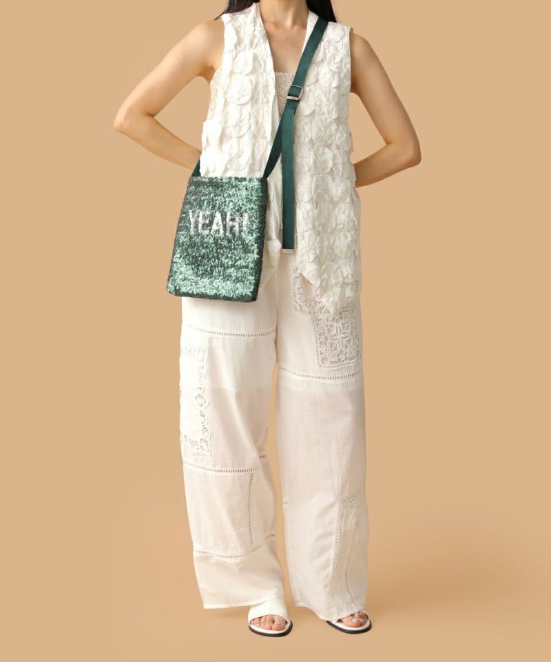 トレンドのスパンコール素材にロゴ刺繍をプラスしたキャッチーなアイテム。