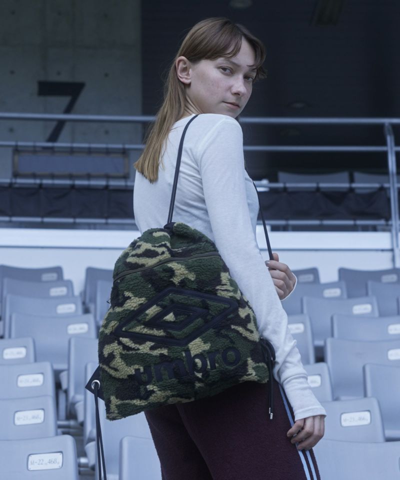 各カラーによって異なるテイストのボア生地と、主張しすぎないインパクト大なロゴ刺繍入りのナップサック。