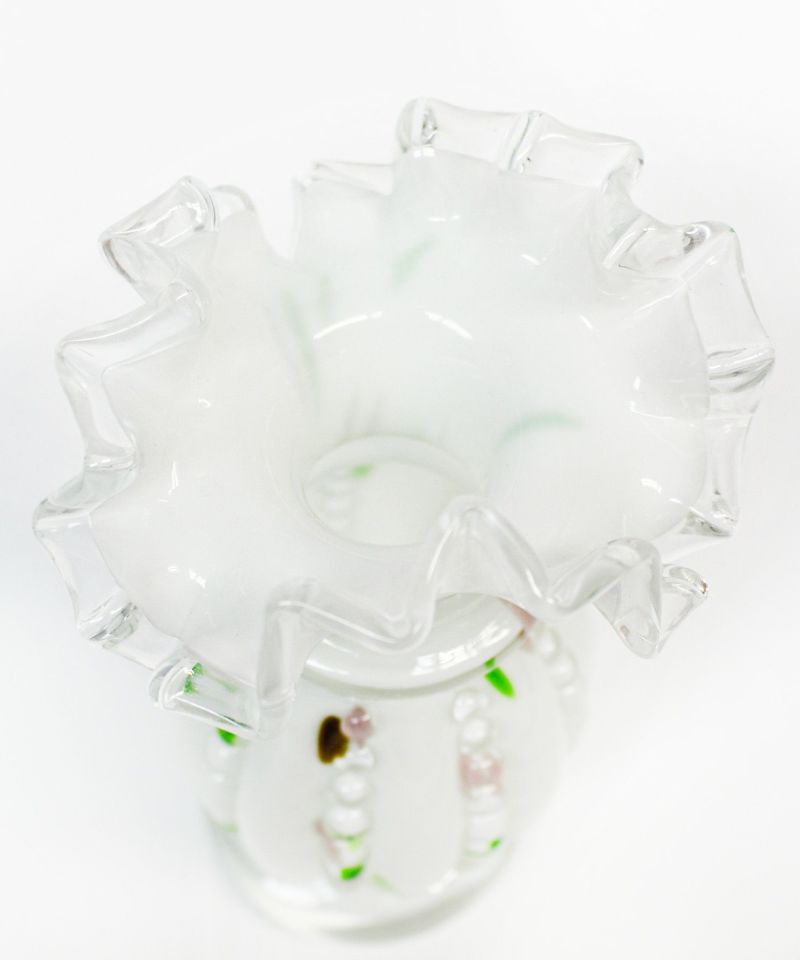 ユニークなデザインとヴィンテージ調のシルエットがポイントのガラスフラワーベース。