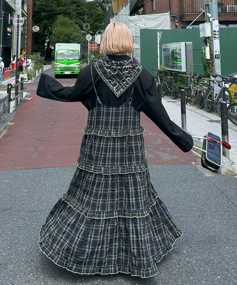 フリルティアードキャミワンピと一緒の生地でスカーフもあったらめちゃくちゃ可愛い!!一緒に付けたい!と思い、スカーフを作りました☺