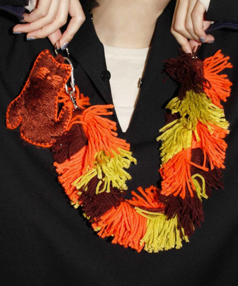 アクリル毛糸を選んでフリンジテープを作り、それを全面に施したBAGを作ってもらいました。