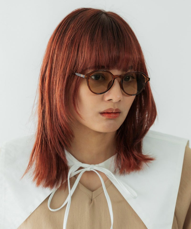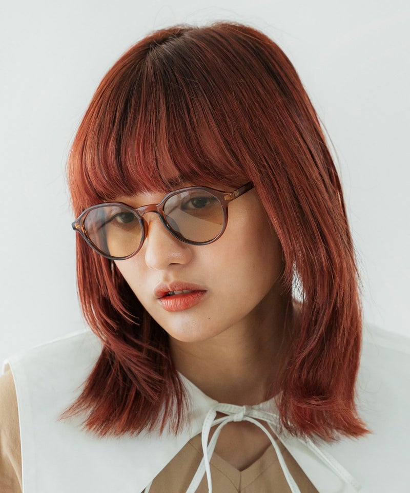 細いフレームにカラーレンズのスタイルが、普段のコーディネートにプラスするだけで雰囲気のあるスタイリングに!