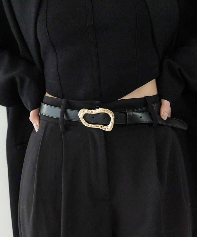 <POIRE -ポワール- >洋梨(POIRE)を模したバックルが目を惹くアイテム。なめらかな表面感の羊調のフェイクレザーが特徴です。ベーシックなカラー展開でデイリーにお使いいただけます。シンプルなコーディネートに合わせてアクセントとしてお使いいただくのもおすすめです。