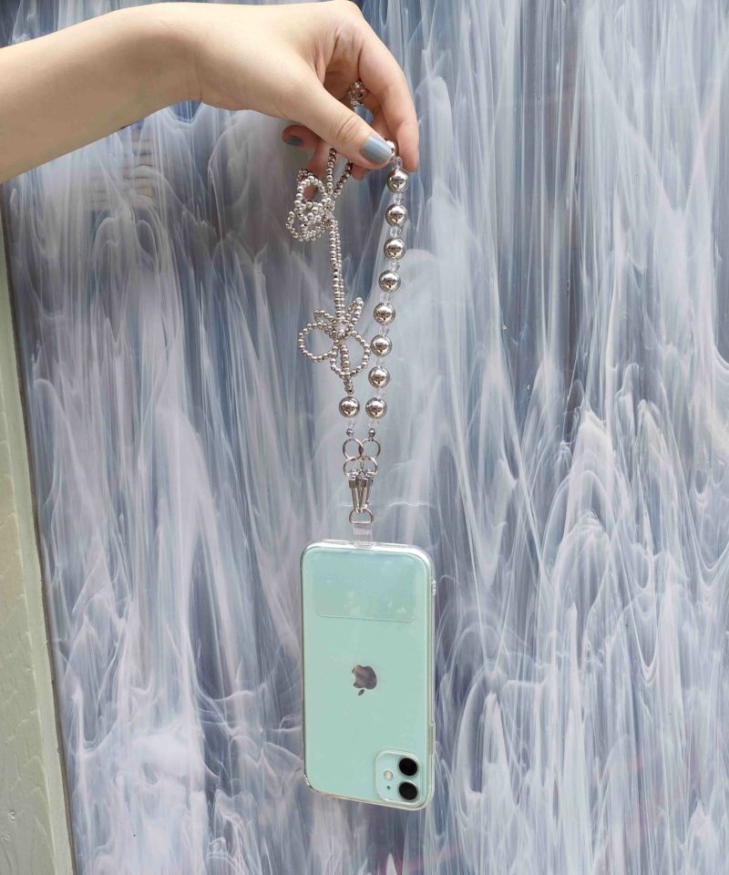 涼しげなビーズを組み合わせたモバイルハンドストラップ。
