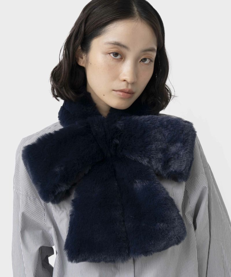 ノーカラーのコートやジャケットとの相性が抜群で、コーディネート全体の印象がアウターに左右されやすい時期でも大きなリボンがポイントになってファッションを楽しめるティペットです。