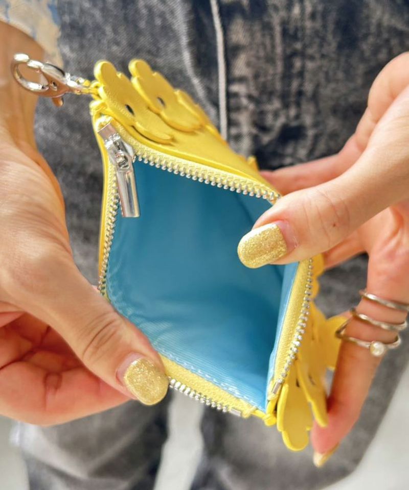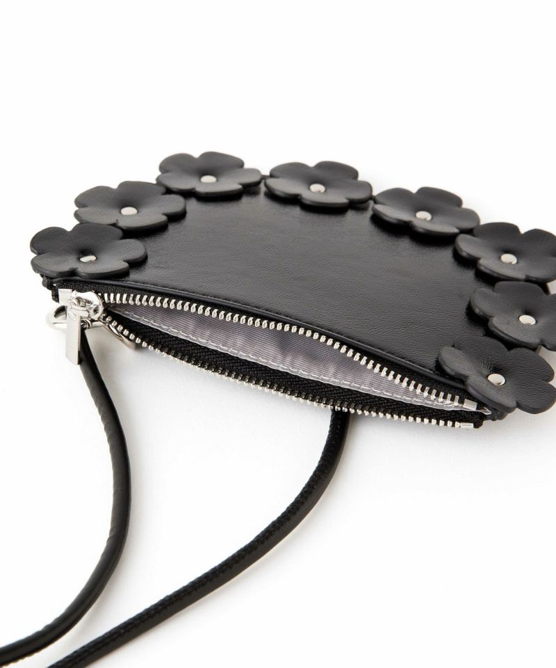 立体的なお花のモチーフが可愛らしいポーチと、シンプルな丸紐に仕上げたショルダー。 甘くなりすぎない組み合わせで、幅広いテイストに合わせることができます。 ポーチとショルダーは取り外し可能で、その日のコーディネートや用途に合わせて使い分けるのもおすすめです。 カラビナがついているため、お気に入りのストラップを加えるなどアレンジも楽しんでいただけます。
