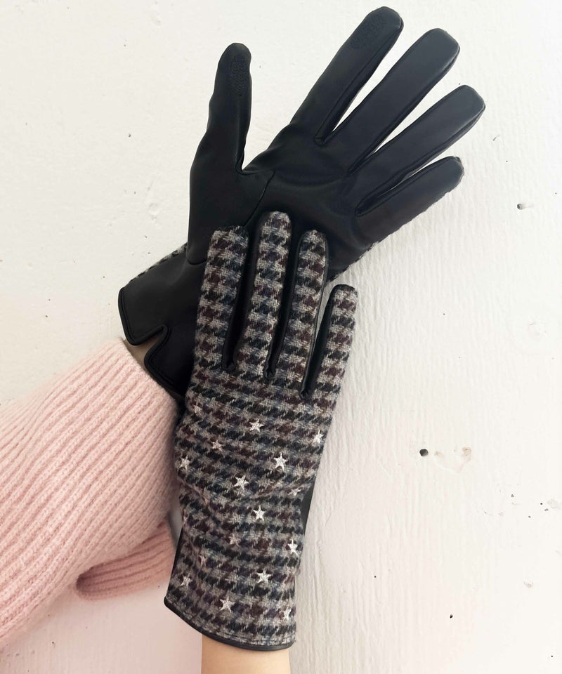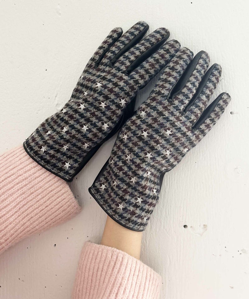 秋冬らしいチェックやジャガード生地に、小さな総柄刺繍を施したグローブです。
