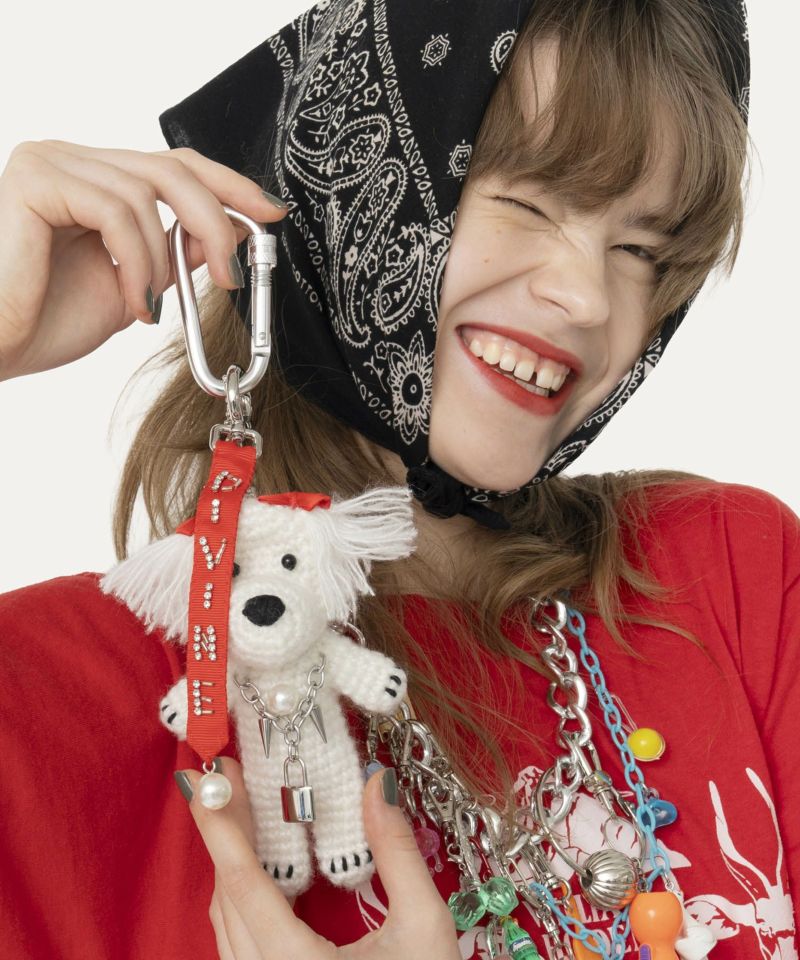 軽やかなモヘア調の毛糸を使って、犬モチーフを編んでもらいました。 「DIVINE=神」という意味。可愛くって機能性もあったらもう神レベル。 編みぐるみの中にLIPが収納できるようになってるLIP Charm。 3つのパーツがセットになっているのですが、それぞれ単体で使えるので色々遊んじゃってください。