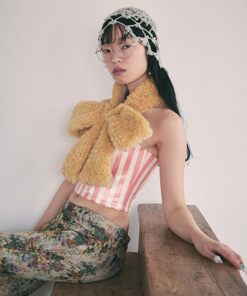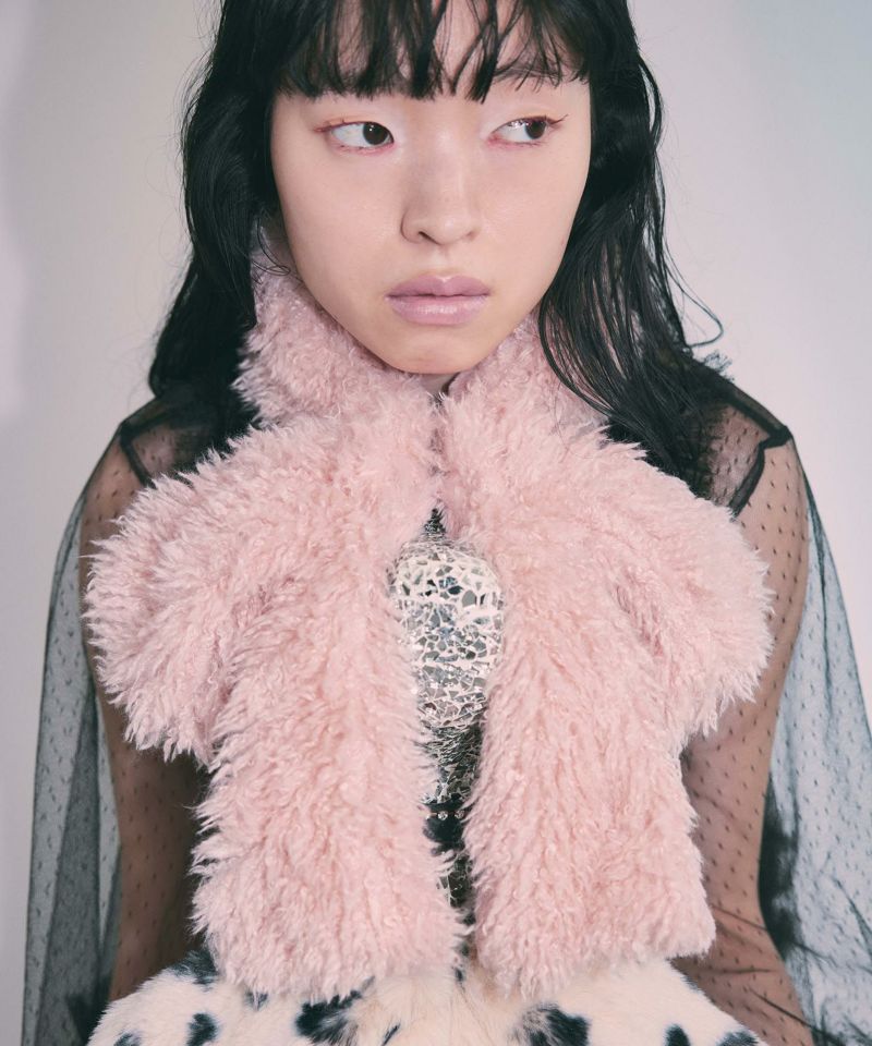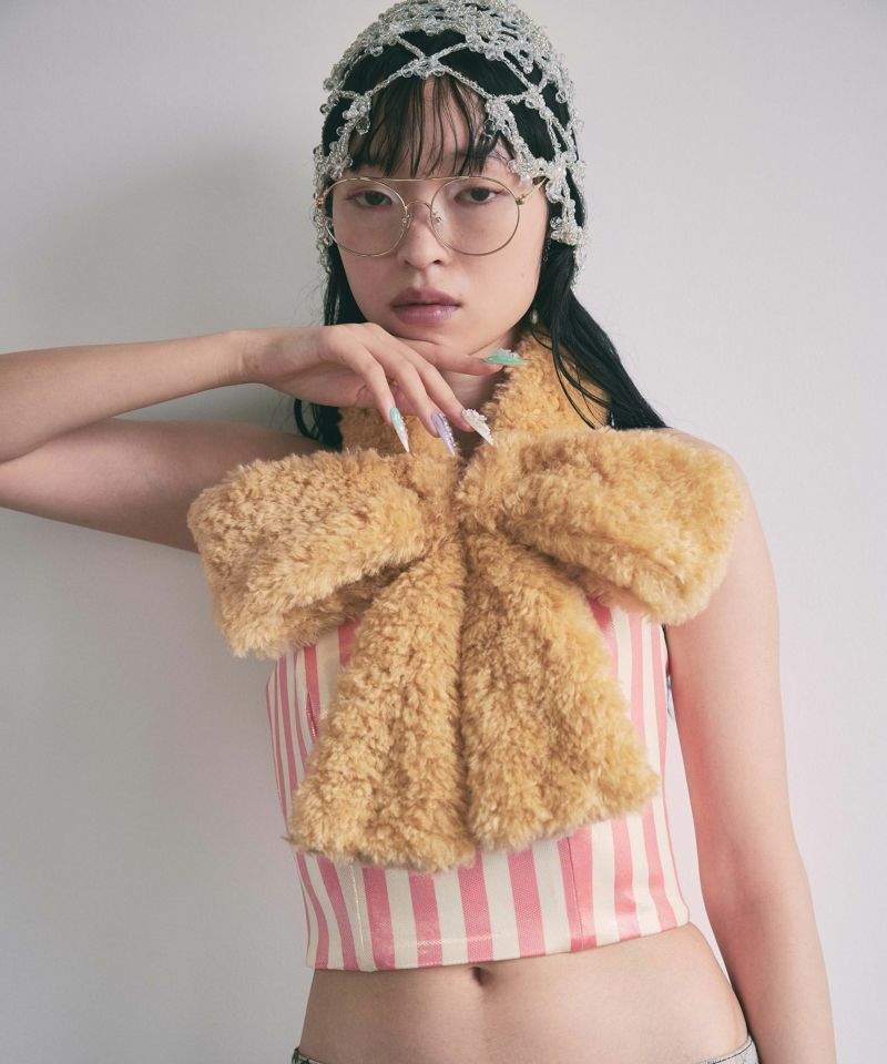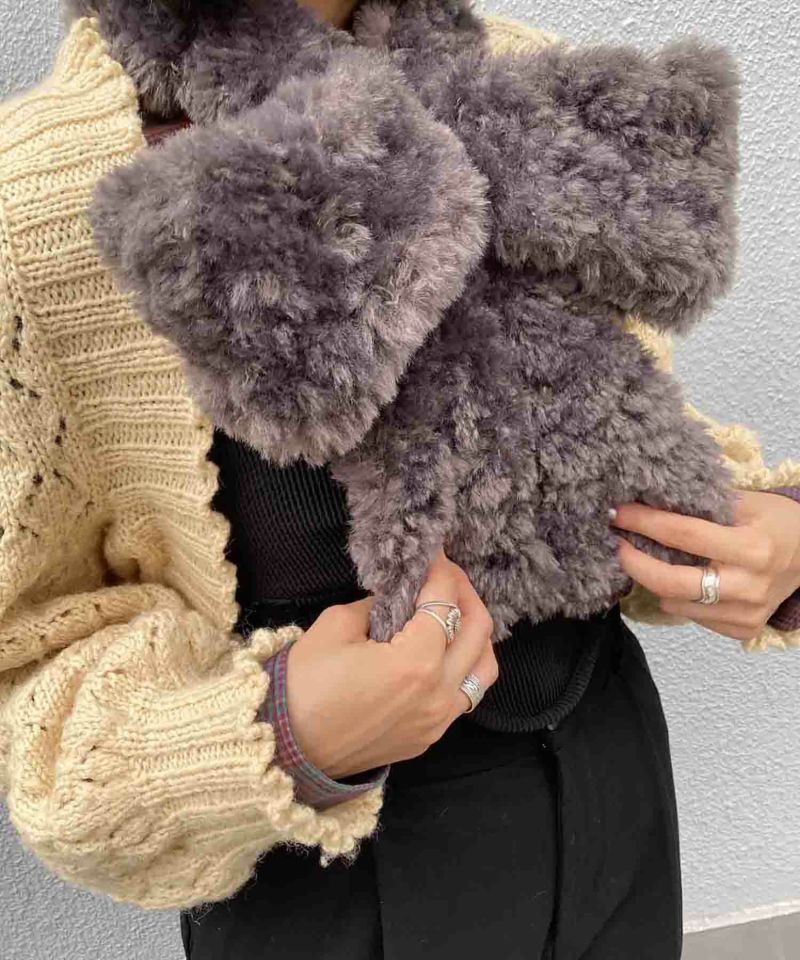 ノーカラーのコートやジャケットとの相性が抜群で、コーディネート全体の印象がアウターに左右されやすい時期でも大きなリボンがポイントになってファッションを楽しめるティペットです。